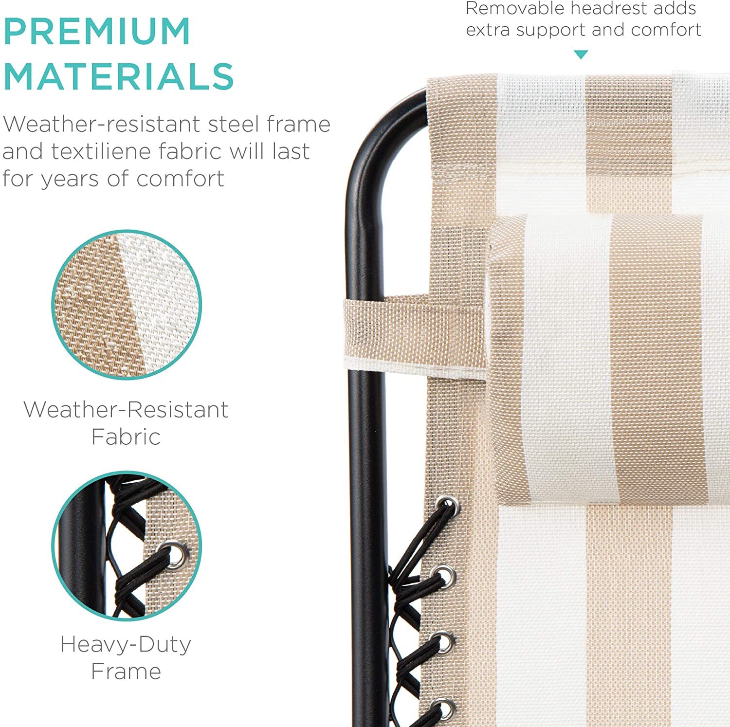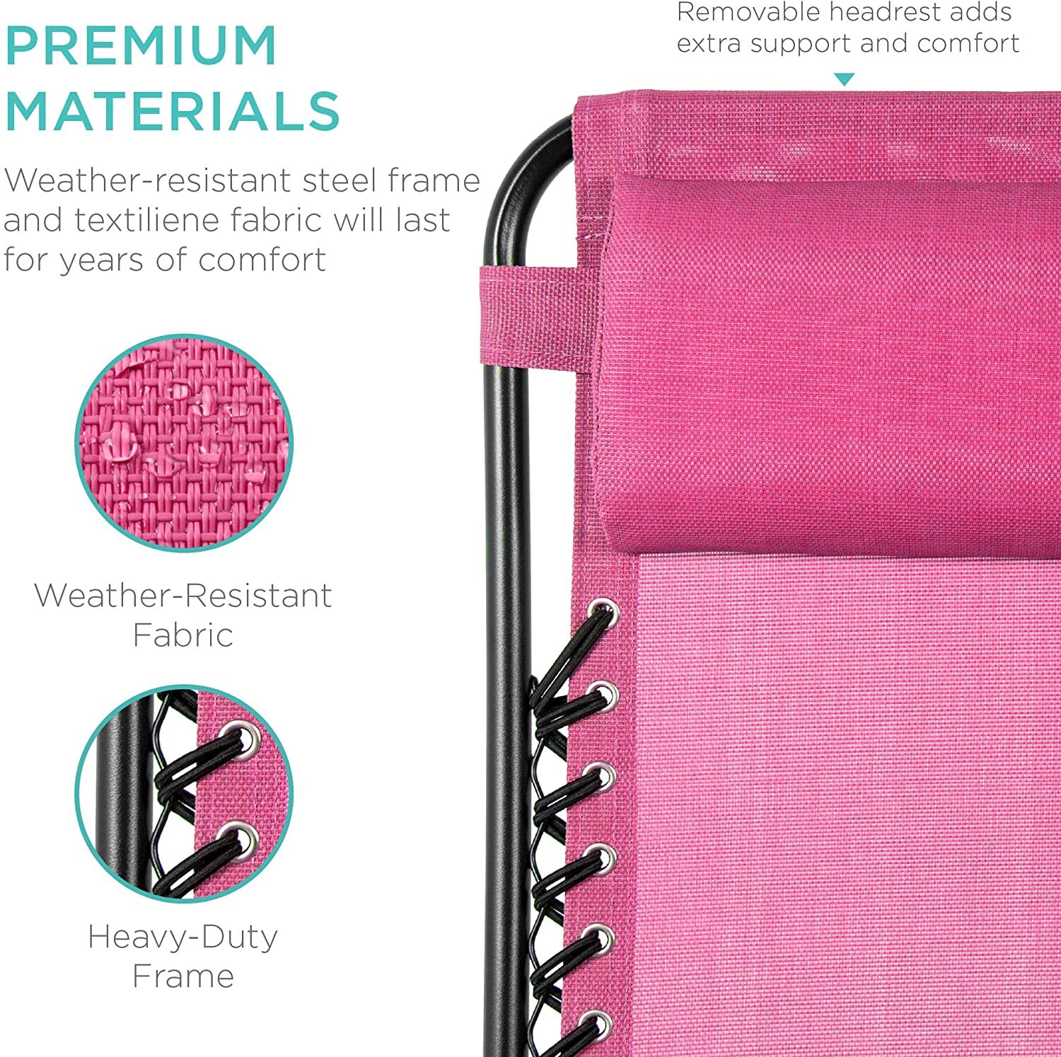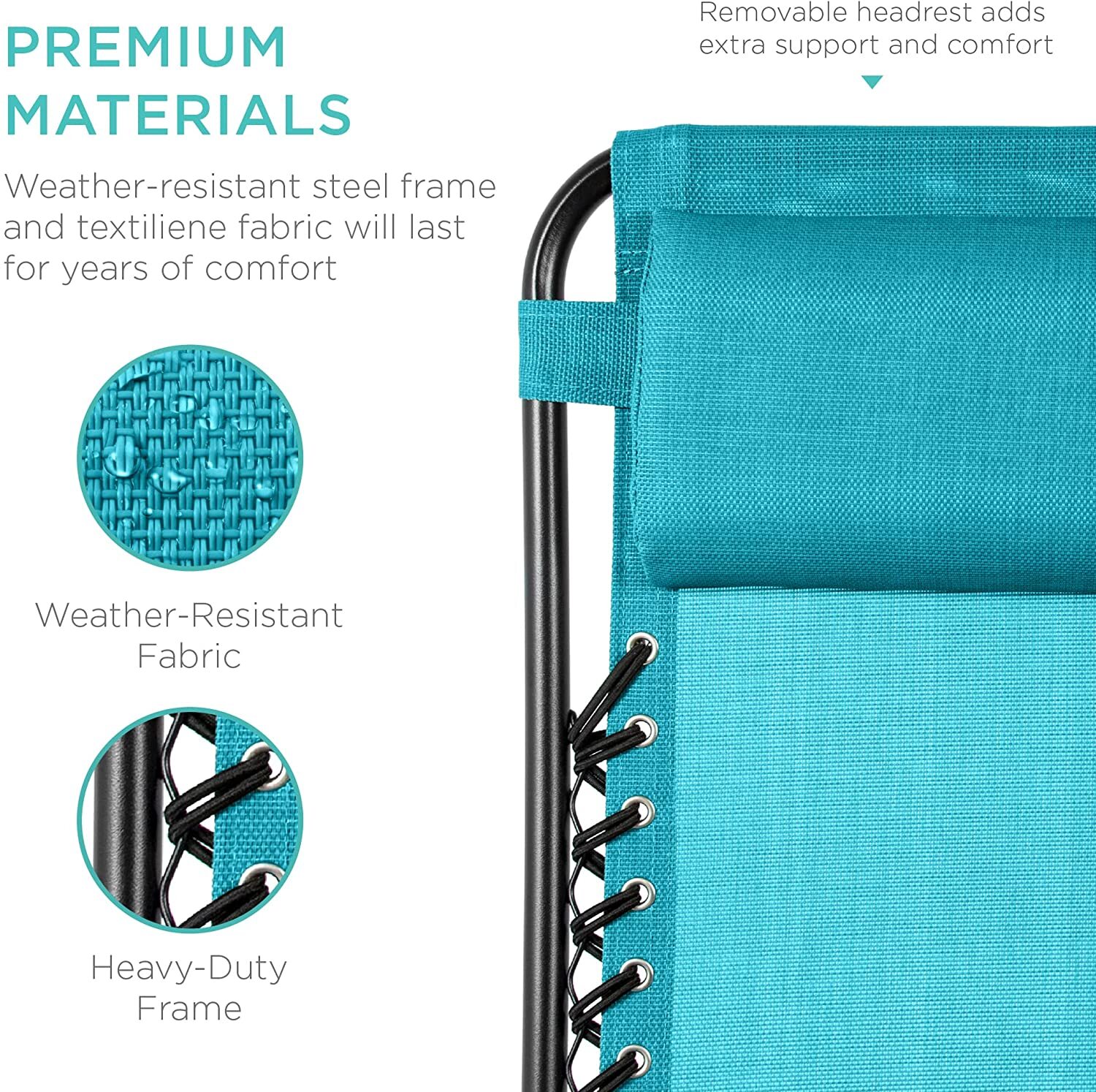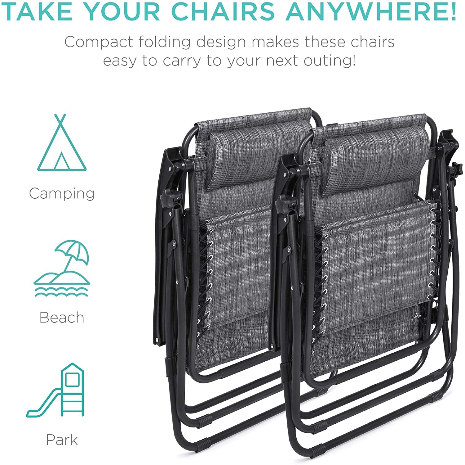 Set of 2 Adjustable Steel Mesh Zero Gravity Lounge Chair Recliners w/Pillows and Cup Holder Trays