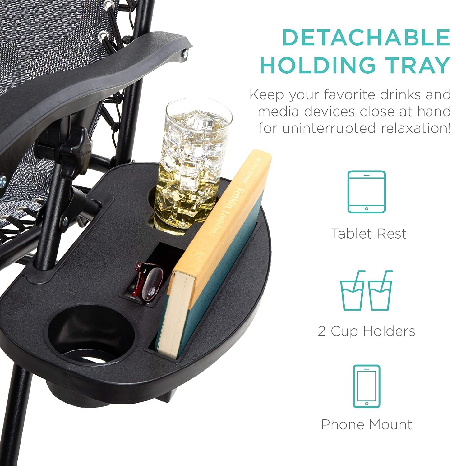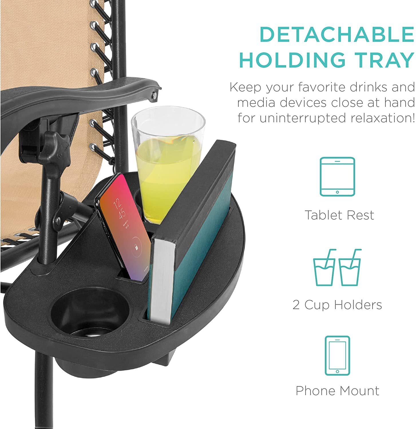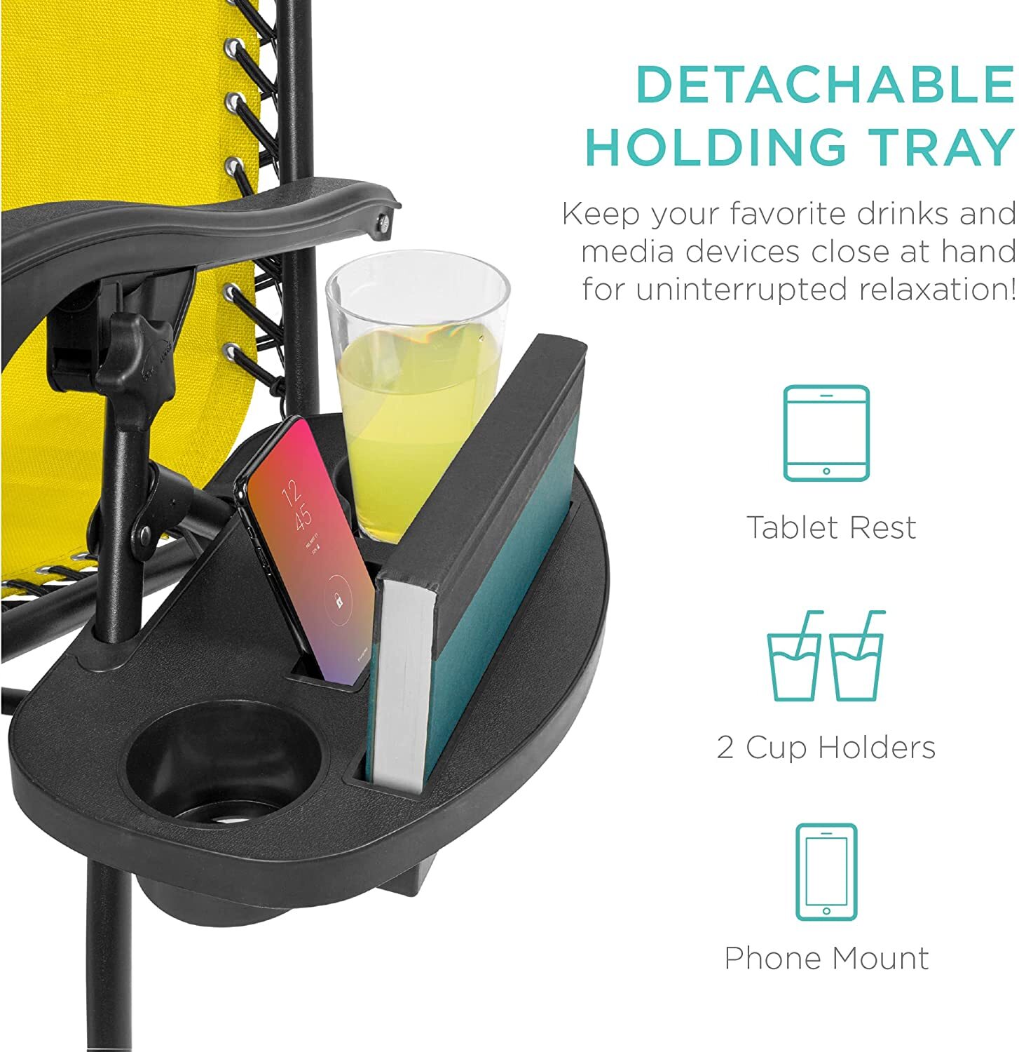 • CONVENIENT & DETACHABLE TRAY: Removable tray is built with two cup holders, a phone holder, and a tablet holder so you never have to be far from your favorite drinks or media devices!