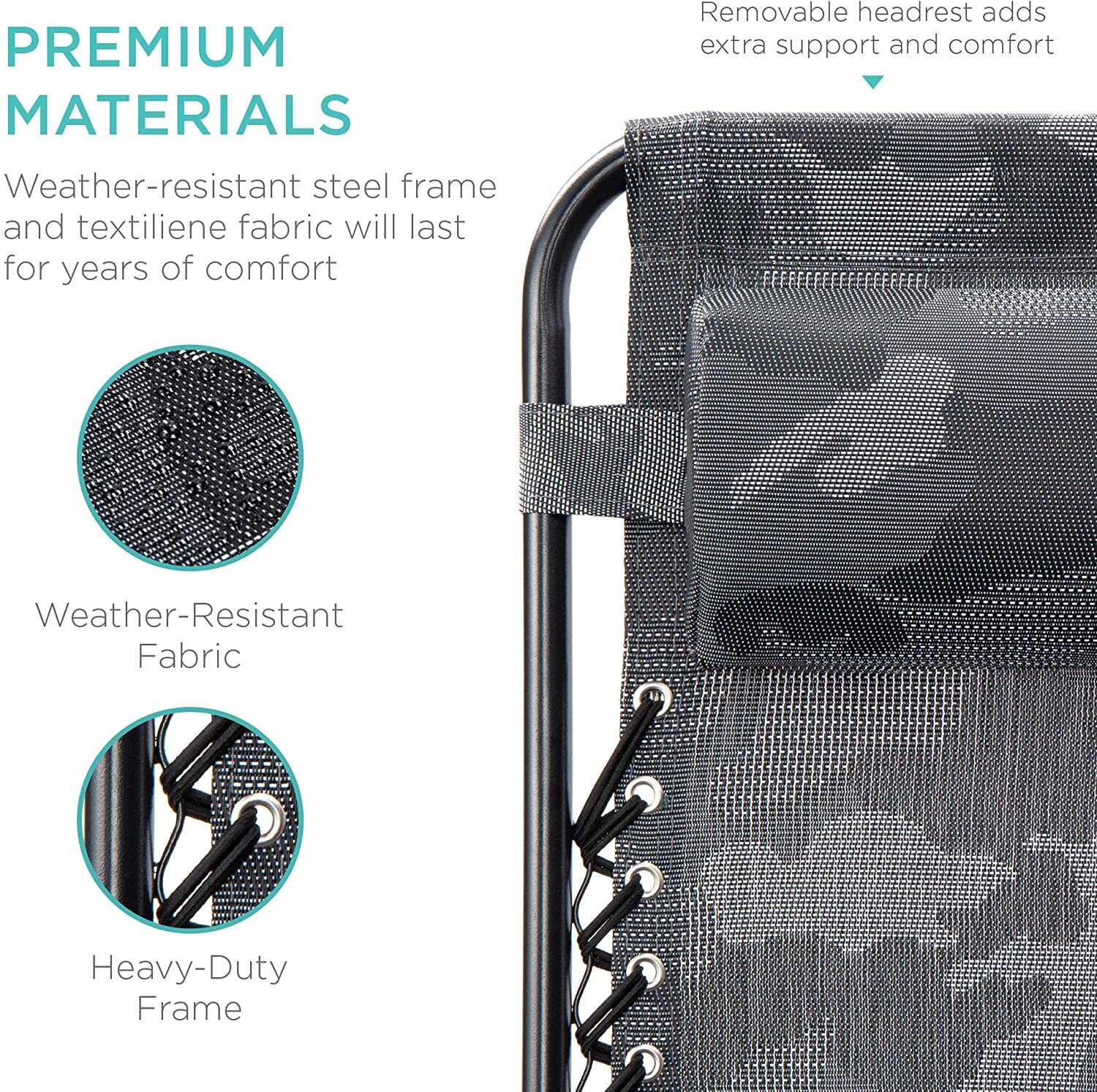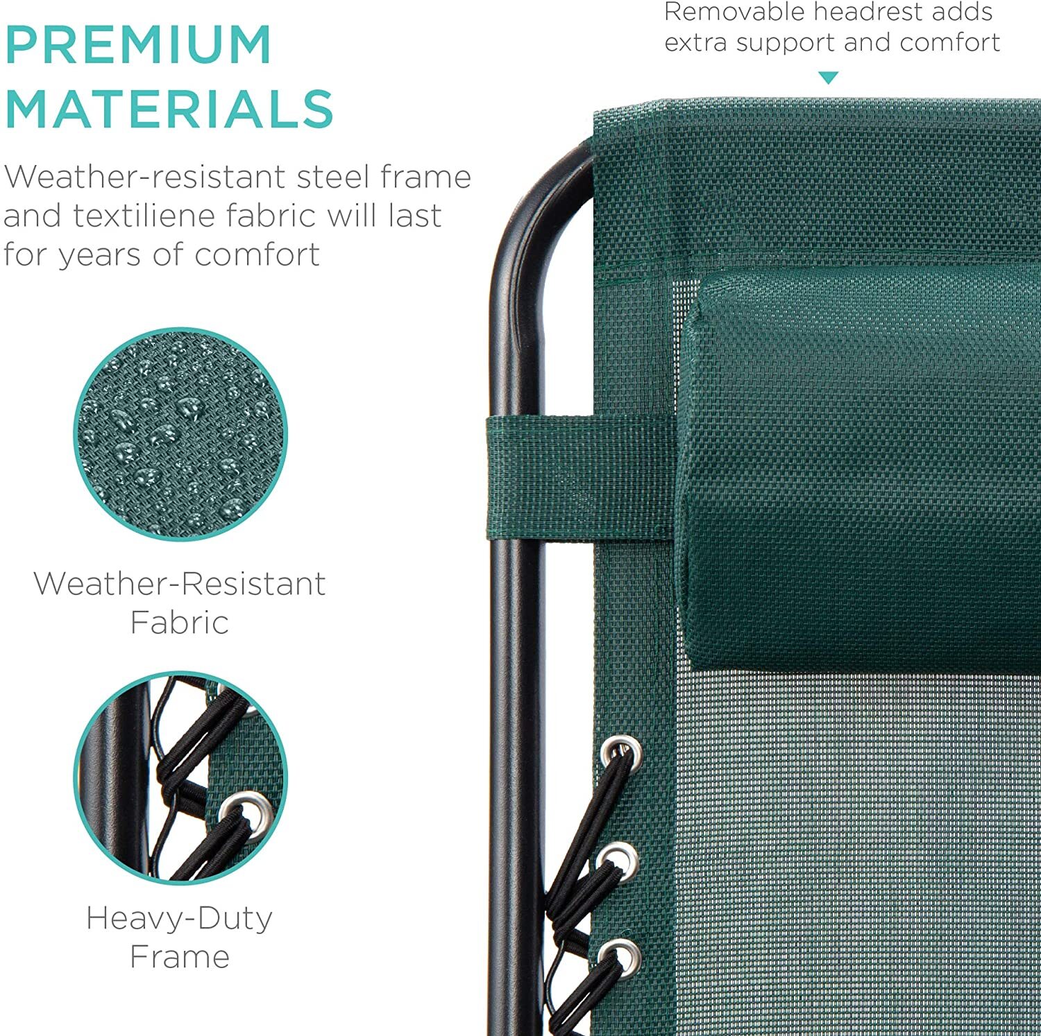 • REMOVABLE, ADJUSTABLE HEADRESTS: Includes a removable, padded headrest for an extra element of adjustable comfort; OPEN DIMENSIONS: 32.5"-61"(L) x 25"(W) x 33.5"-44"(H); FOLDED DIMENSIONS: 38"(L) x 25"(W) x 6"(H)