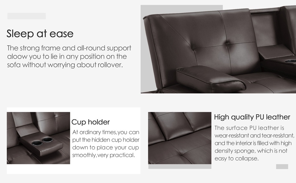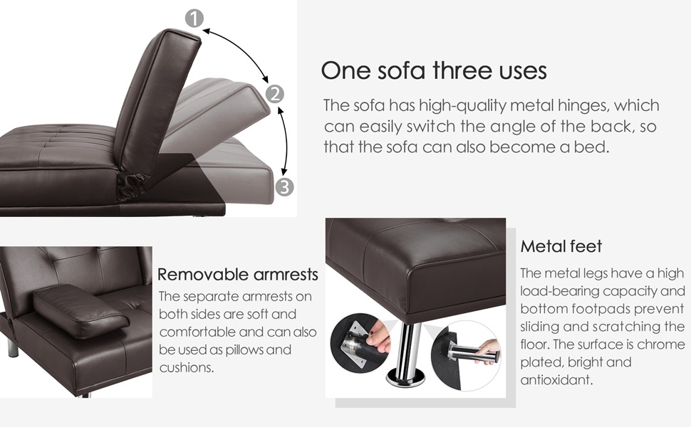 The backrest of the sofa can be adjusted to 3 angles. By manual adjustment, you can choose the right angle to sit or sleep.