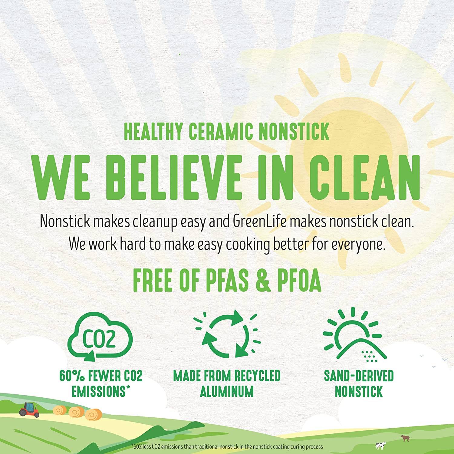 - Our healthy and easy-to-clean ceramic nonstick coating is derived from sand and free of PFAS, PFOA, lead, and cadmium for effortless cooking and quick cleanup