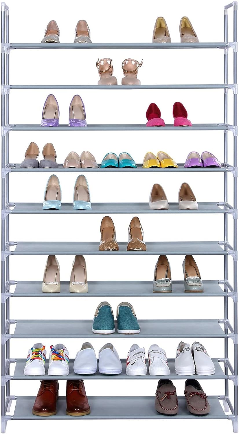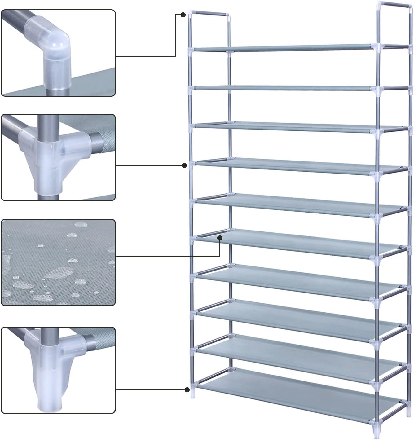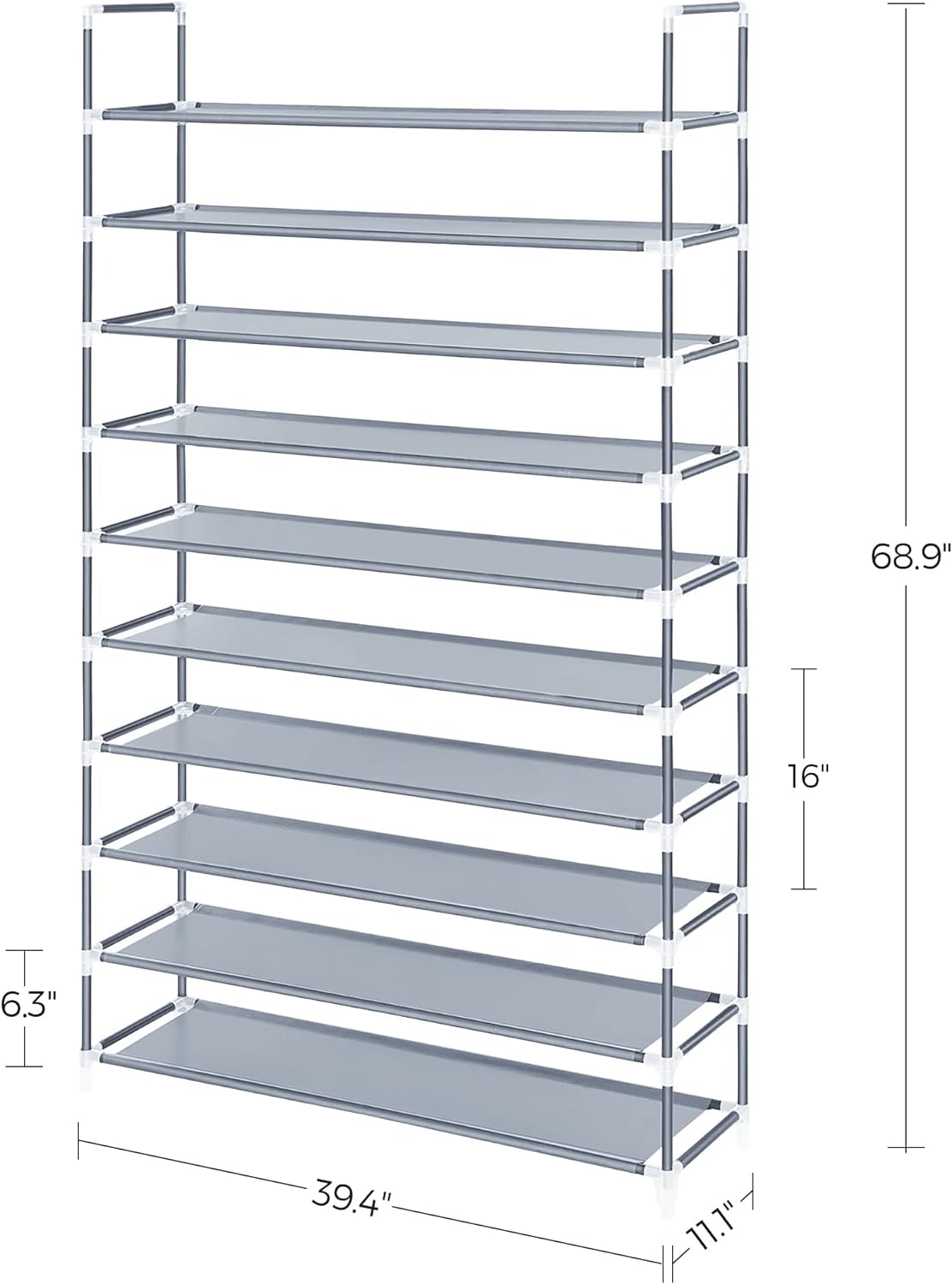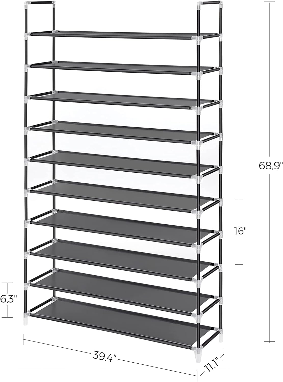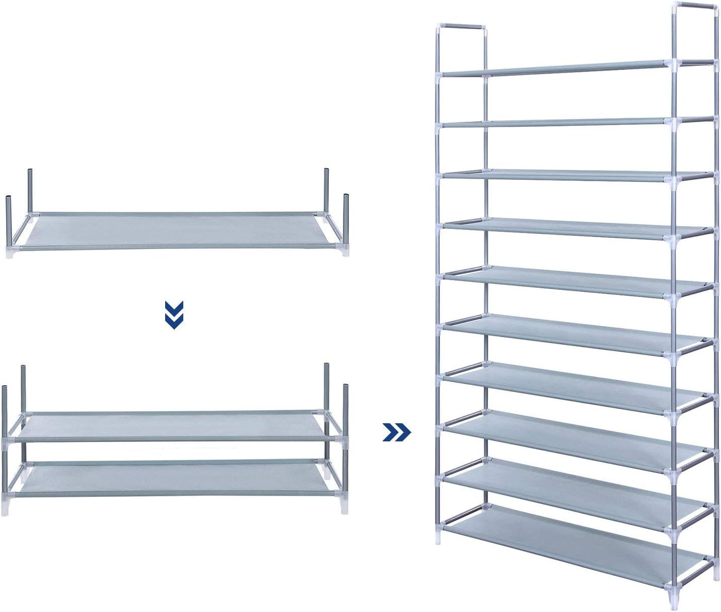 - [Lightweight yet Strong] Constructed with non-woven fabric shelves, metal tube frames, and sturdy plastic connectors, this shoe rack is lightweight yet strong to hold up to 11 lb per tier