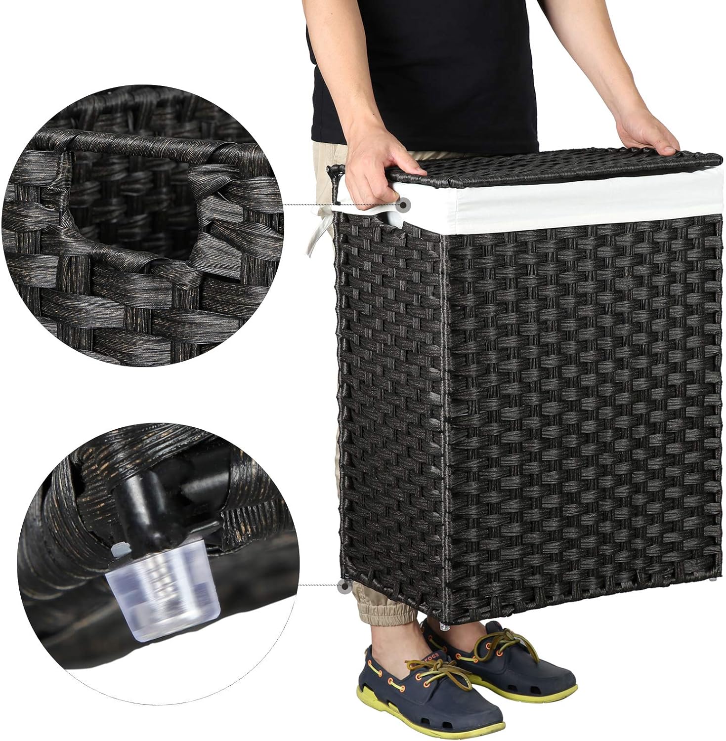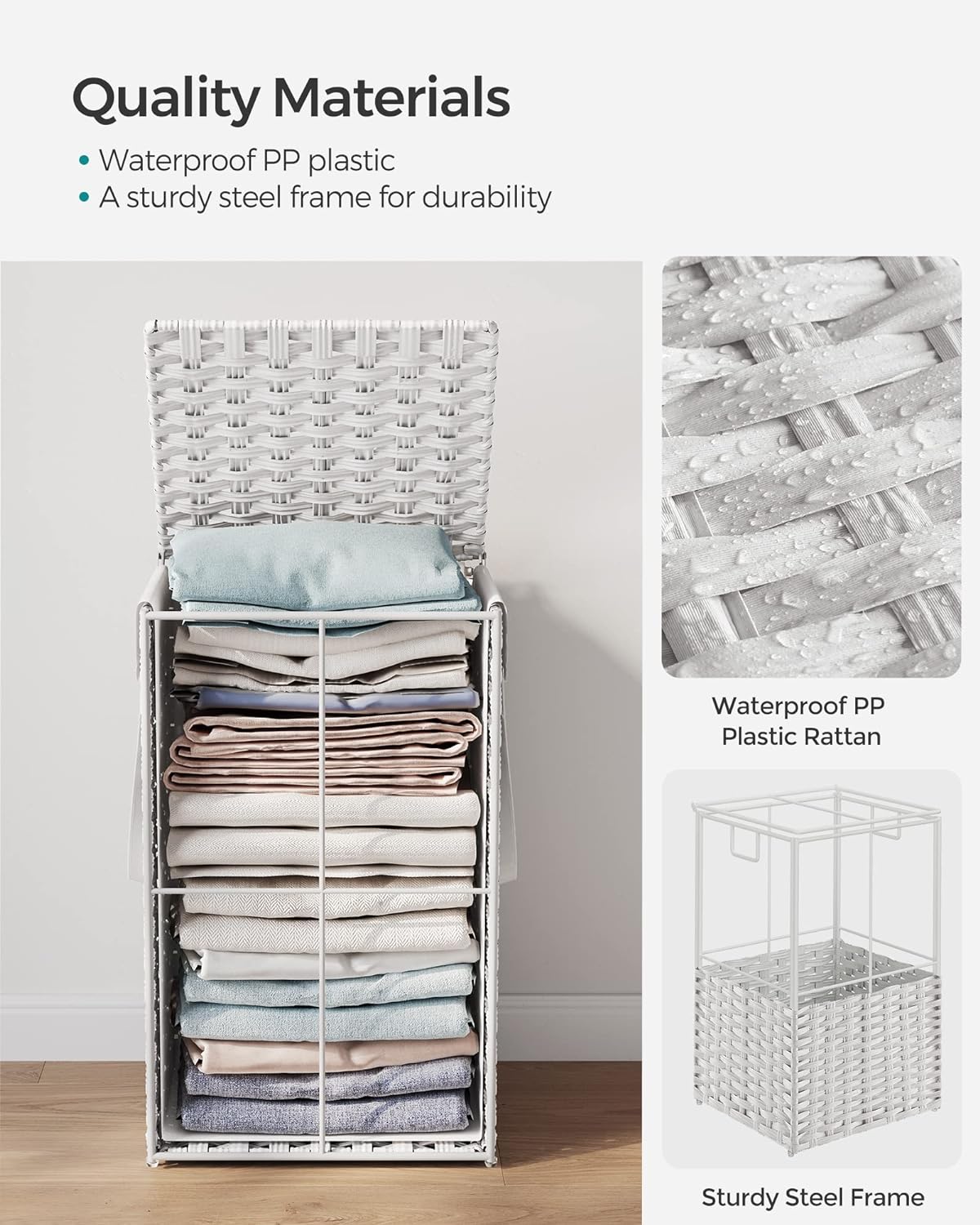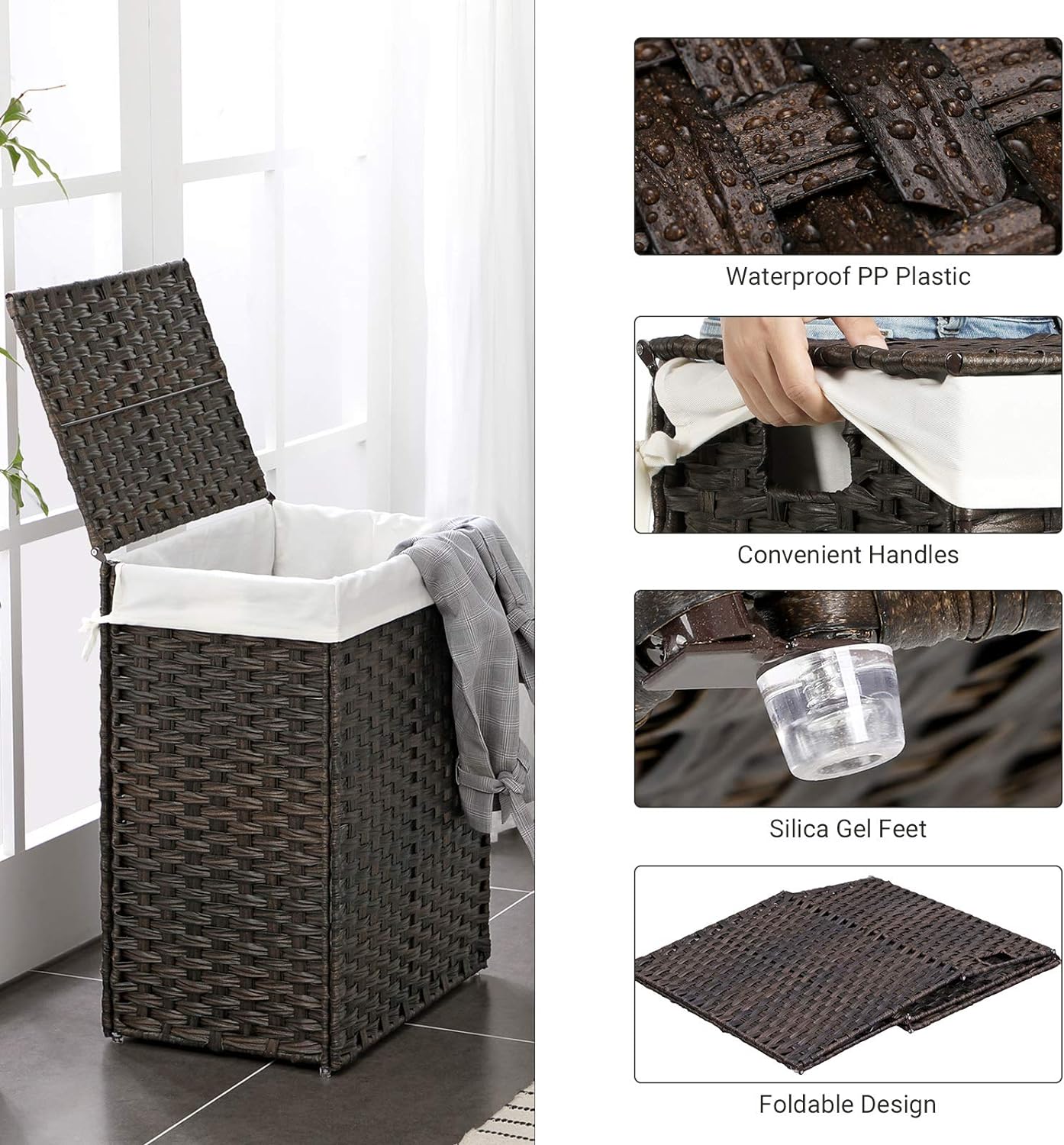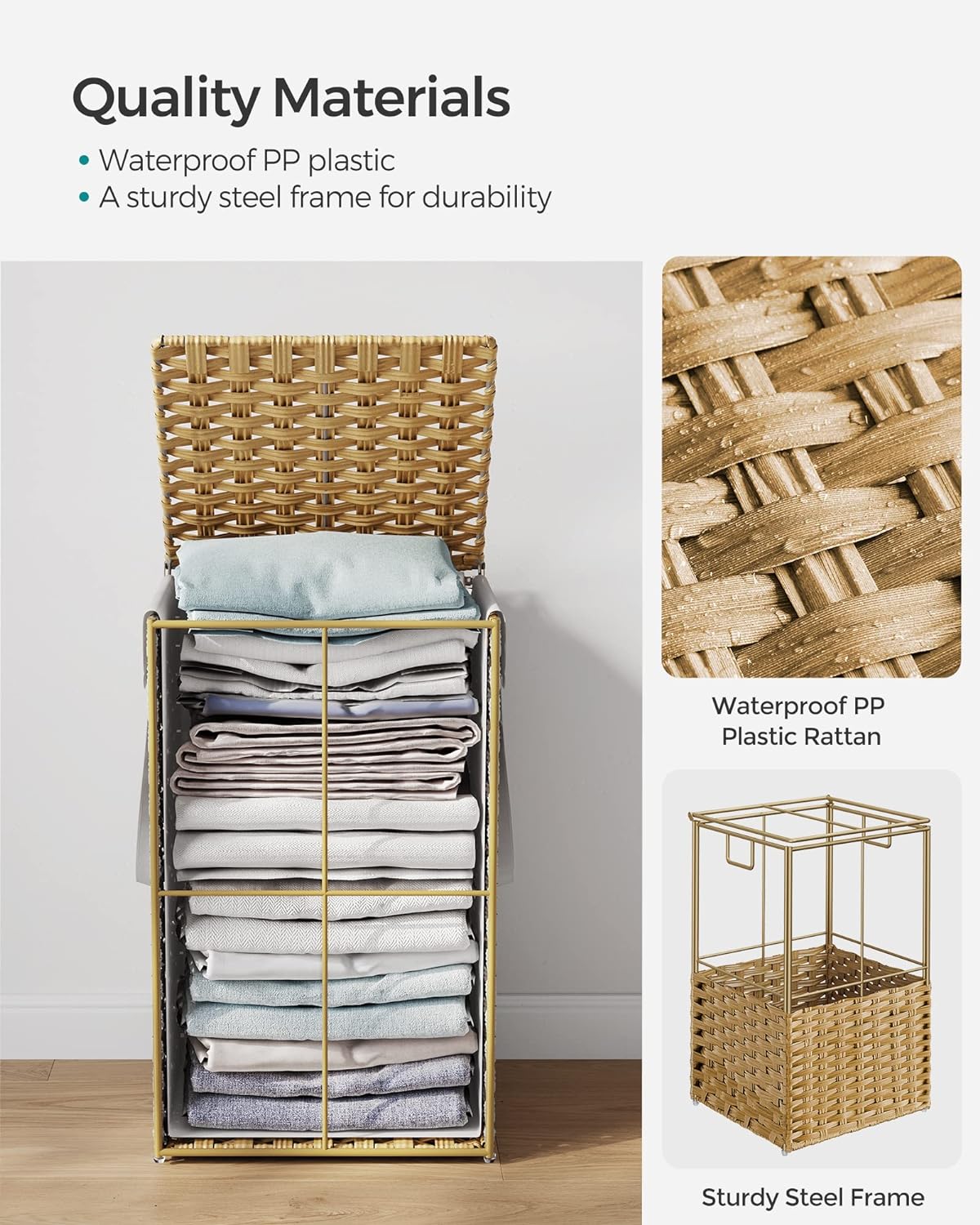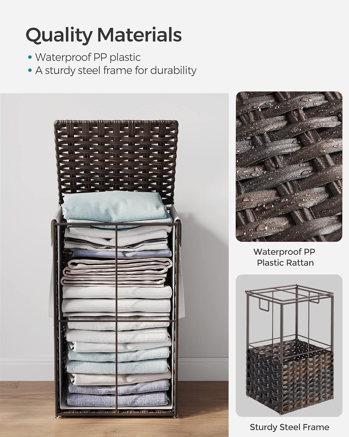 - [PP Rattan & Metal Frame] The handwoven PP rattan for the laundry hamper is waterproof and breathable, so your clothes can always stay dry and well ventilated; the metal frame is stable and strong to hold up to 55 lb