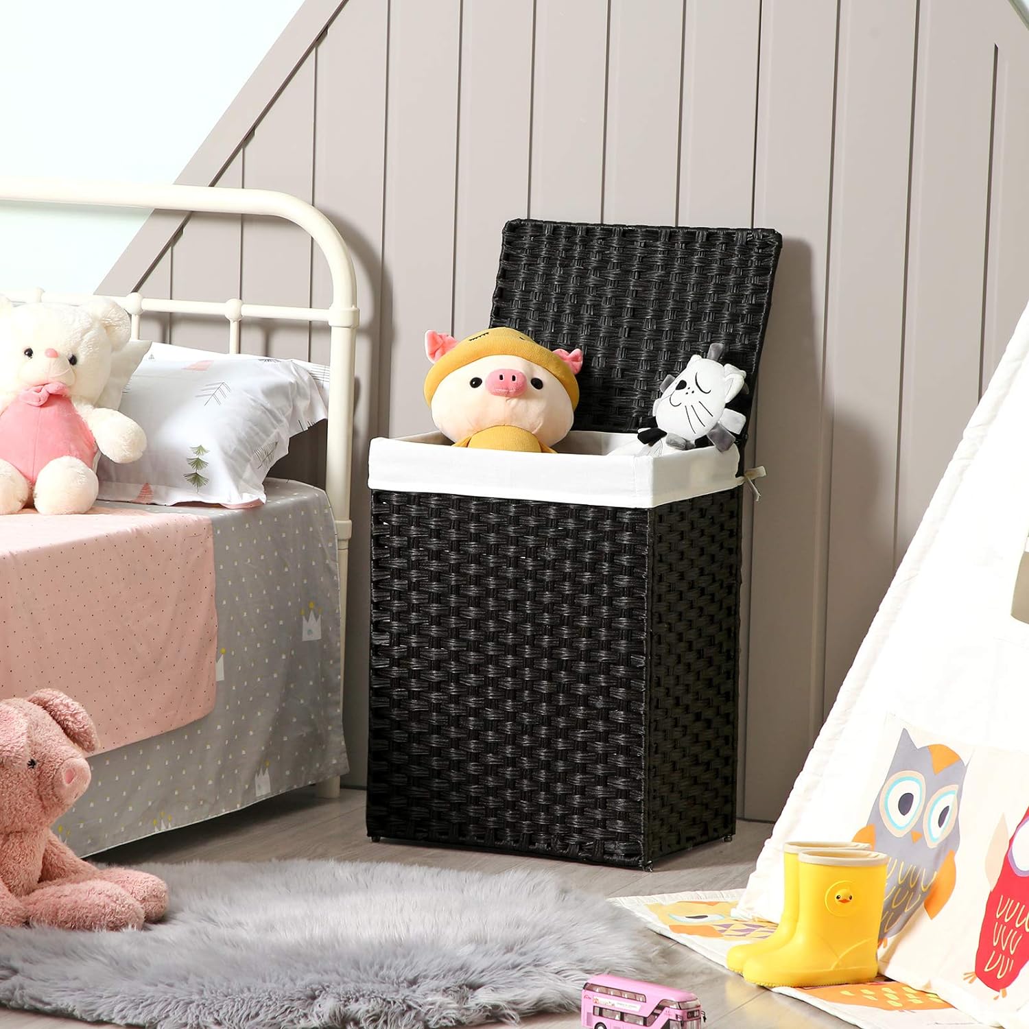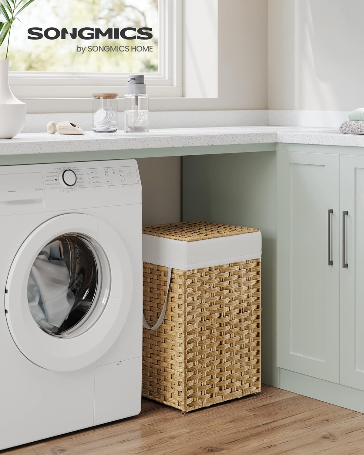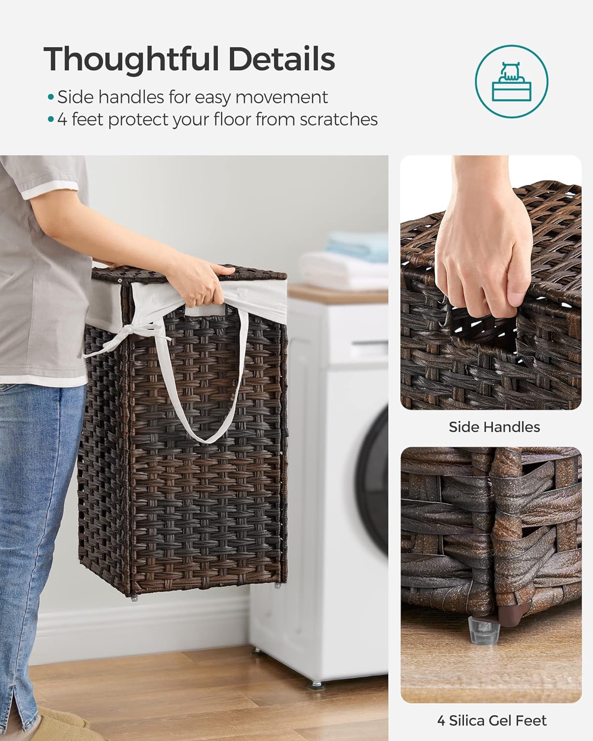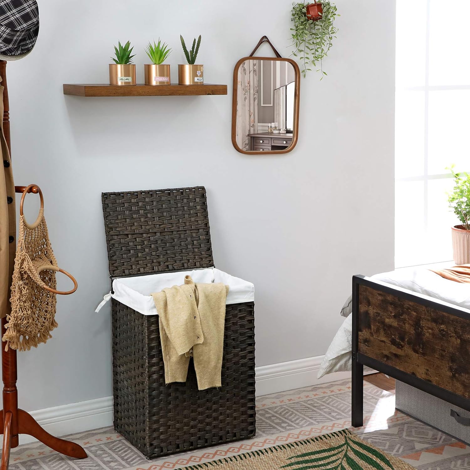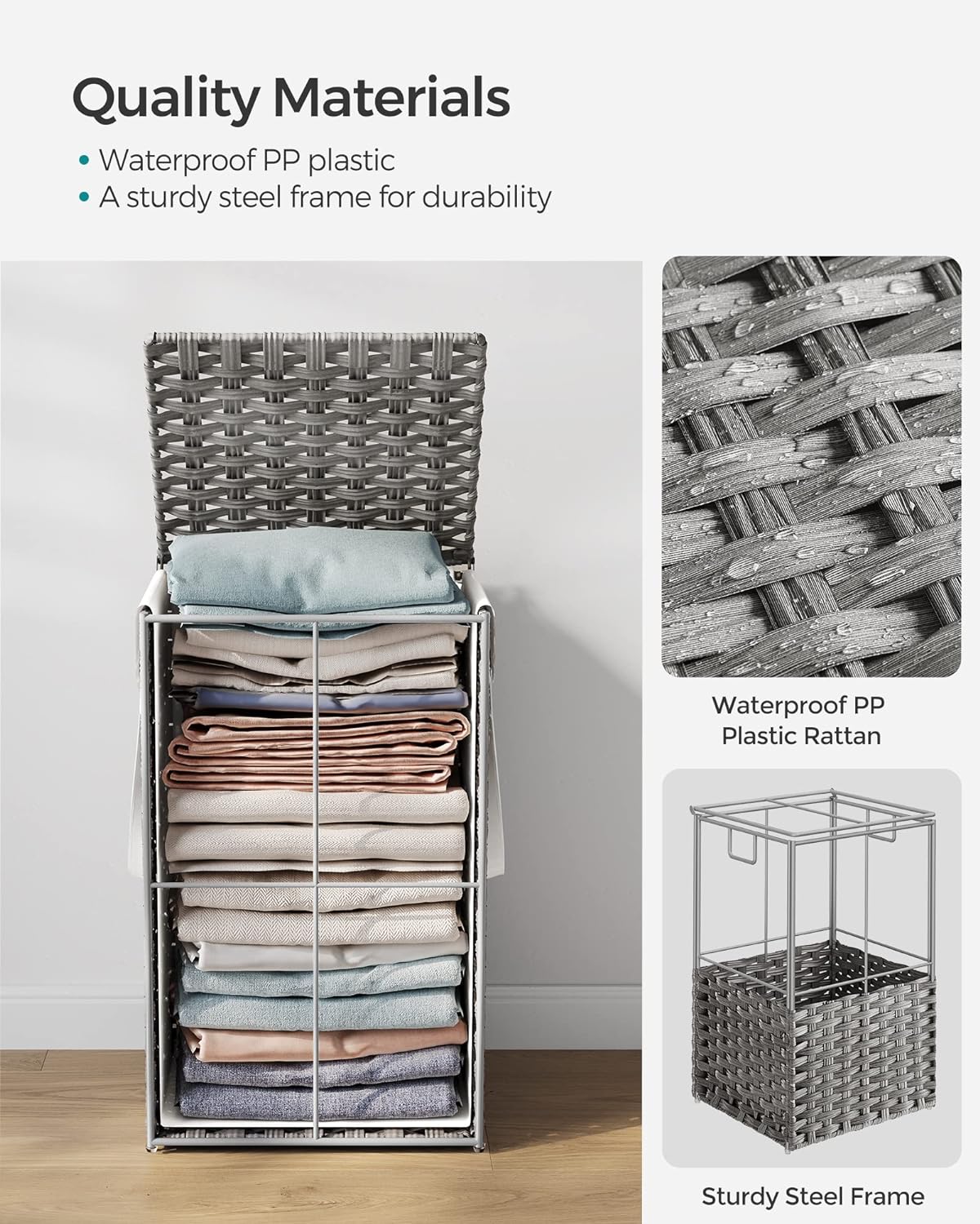 - [PP Rattan & Metal Frame] The handwoven PP rattan for the laundry hamper is waterproof and breathable, so your clothes can always stay dry and well ventilated; the metal frame is stable and strong to hold up to 55 lb