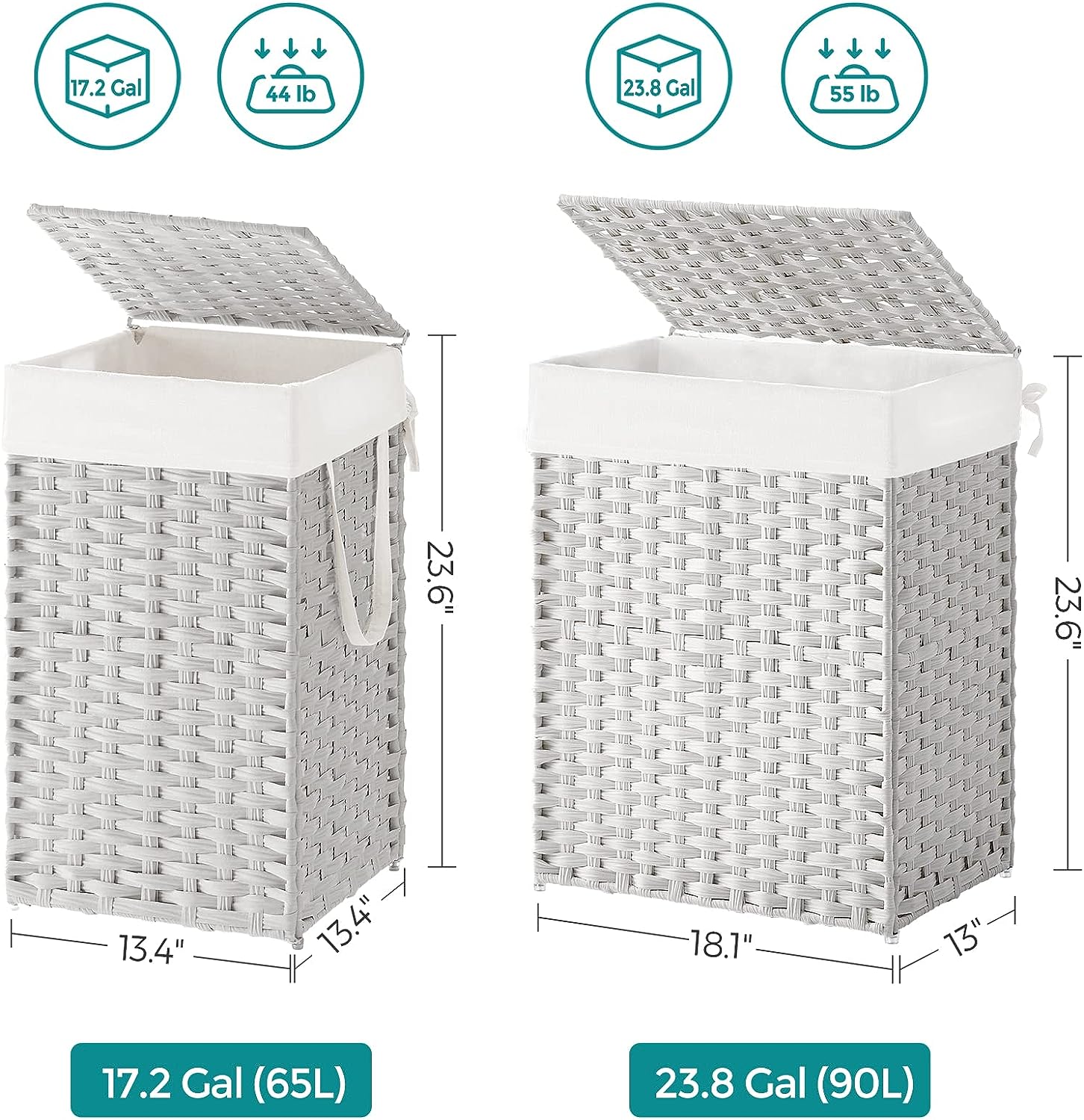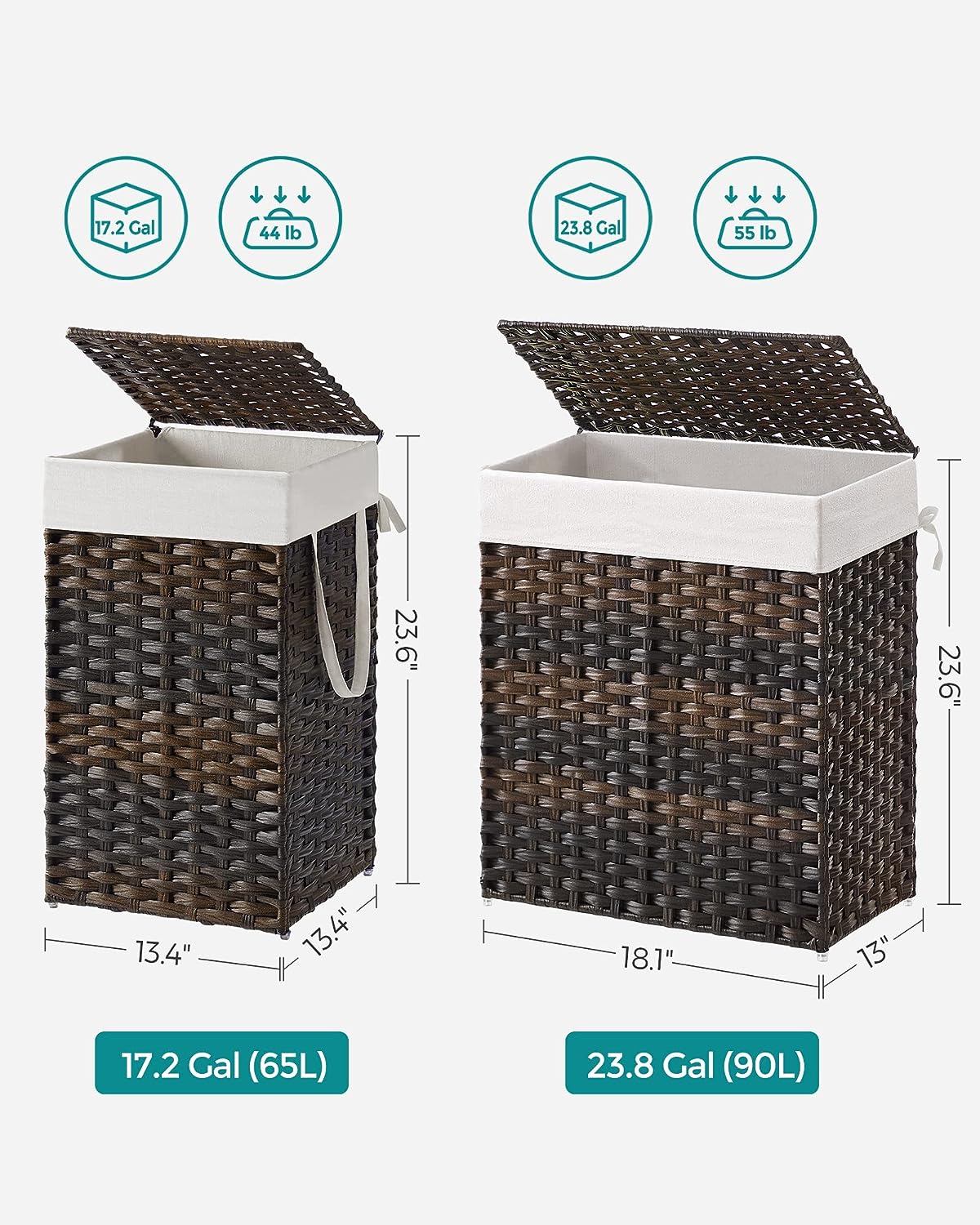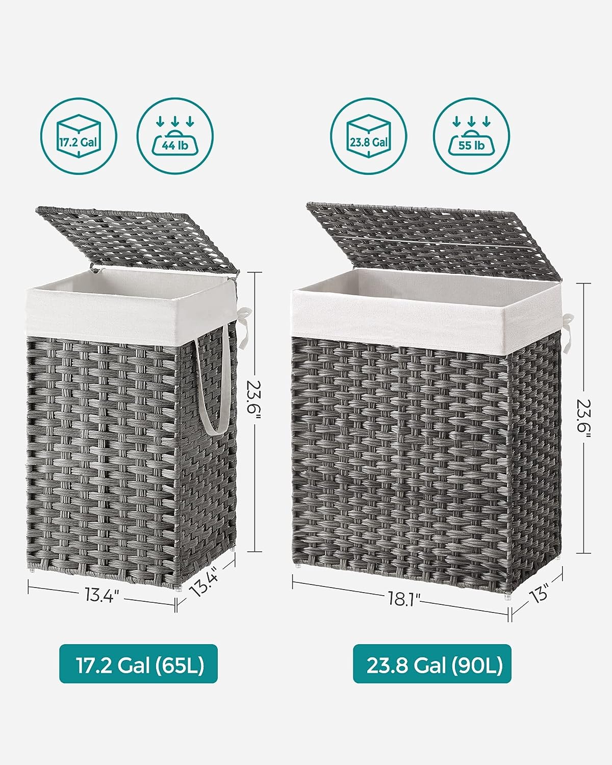 - [Spacious yet Space-Saving] Boasting a large 23.8-gallon capacity and sized at 18.1”L x 13”W x 23.6”H, this laundry basket is roomy to hold tons of clothing while taking up little floor space to fit in small spaces