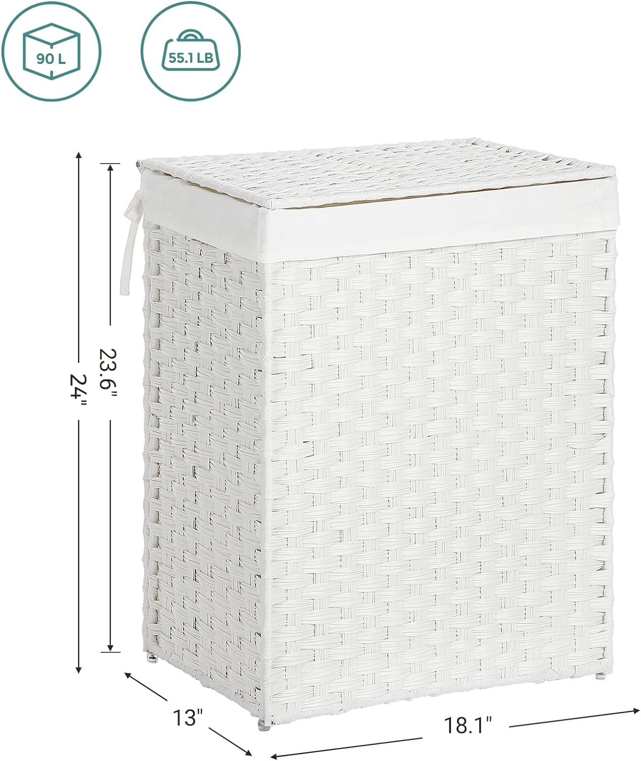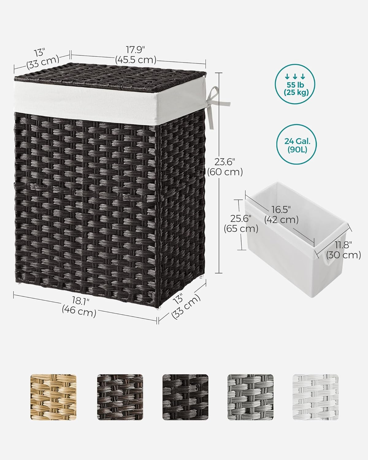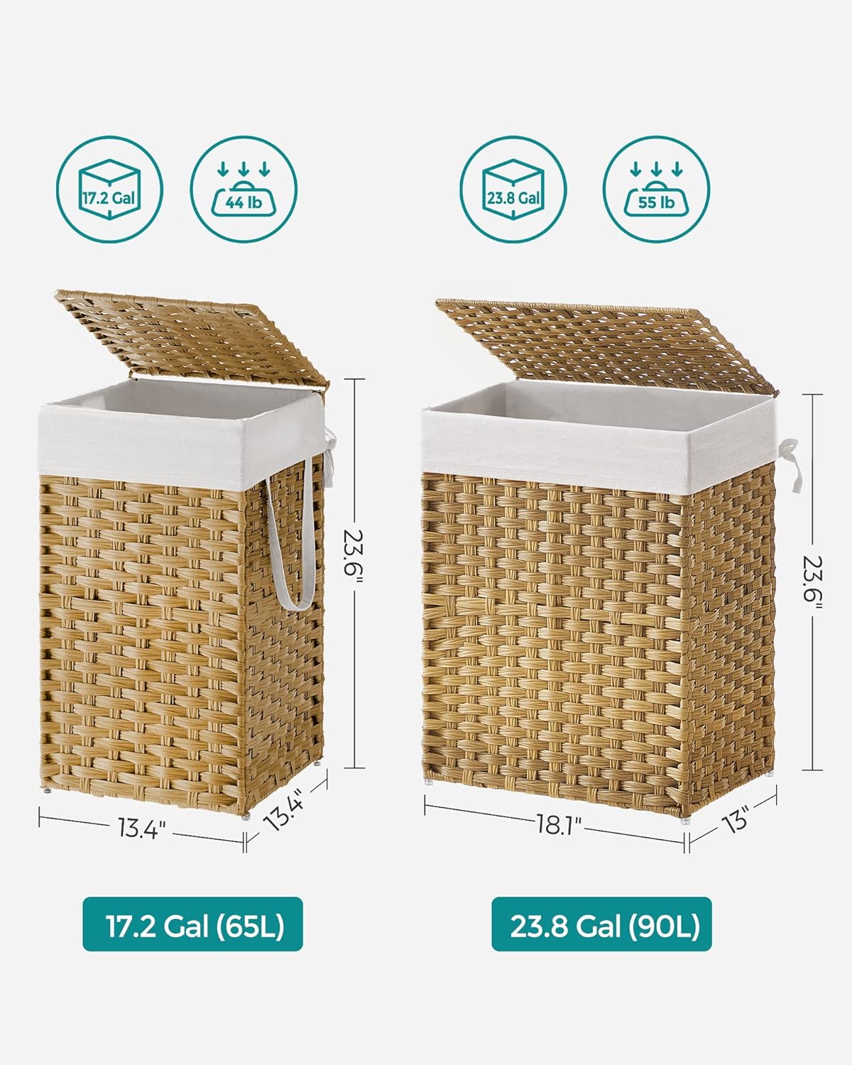 - [Spacious yet Space-Saving] Boasting a large 23.8-gallon capacity and sized at 18.1”L x 13”W x 23.6”H, this laundry basket is roomy to hold tons of clothing while taking up little floor space to fit in small spaces
