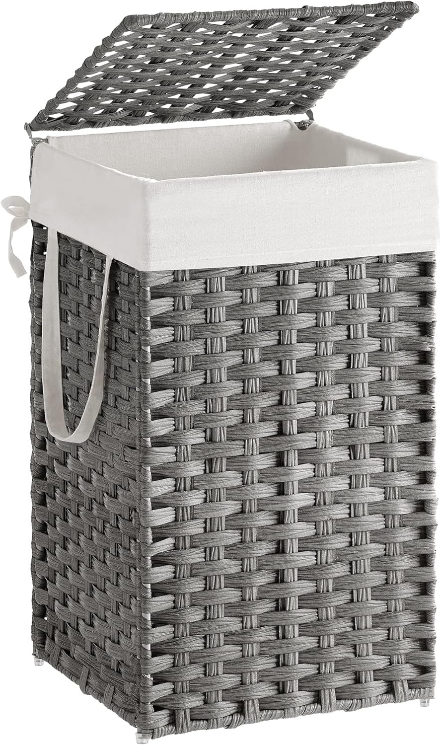 - [Laundry Hamper with Lid] The lid of the hamper can be opened and closed with one hand, so you can easily close the lid after storing clothes; the lid prevents odours from dirty clothes and keeps them away from dust