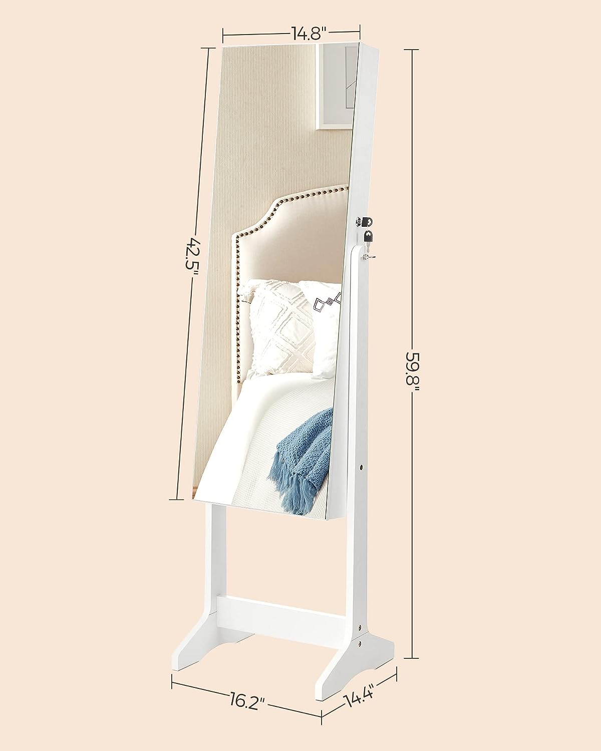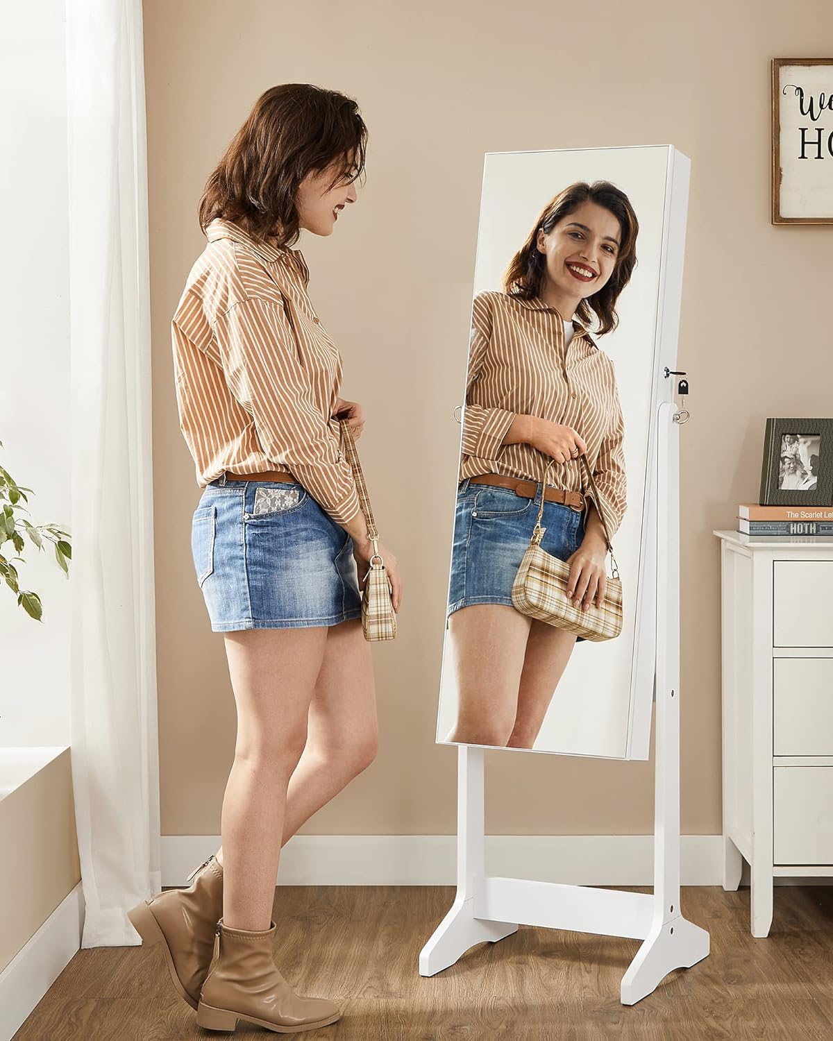 - See Beauty in the Mirror: With the full-length mirror, you’ll be able to have a head-to-toe view of your outfit at one glance; plus, the glass mirror offers better performance while making your room brighter and bigger-looking