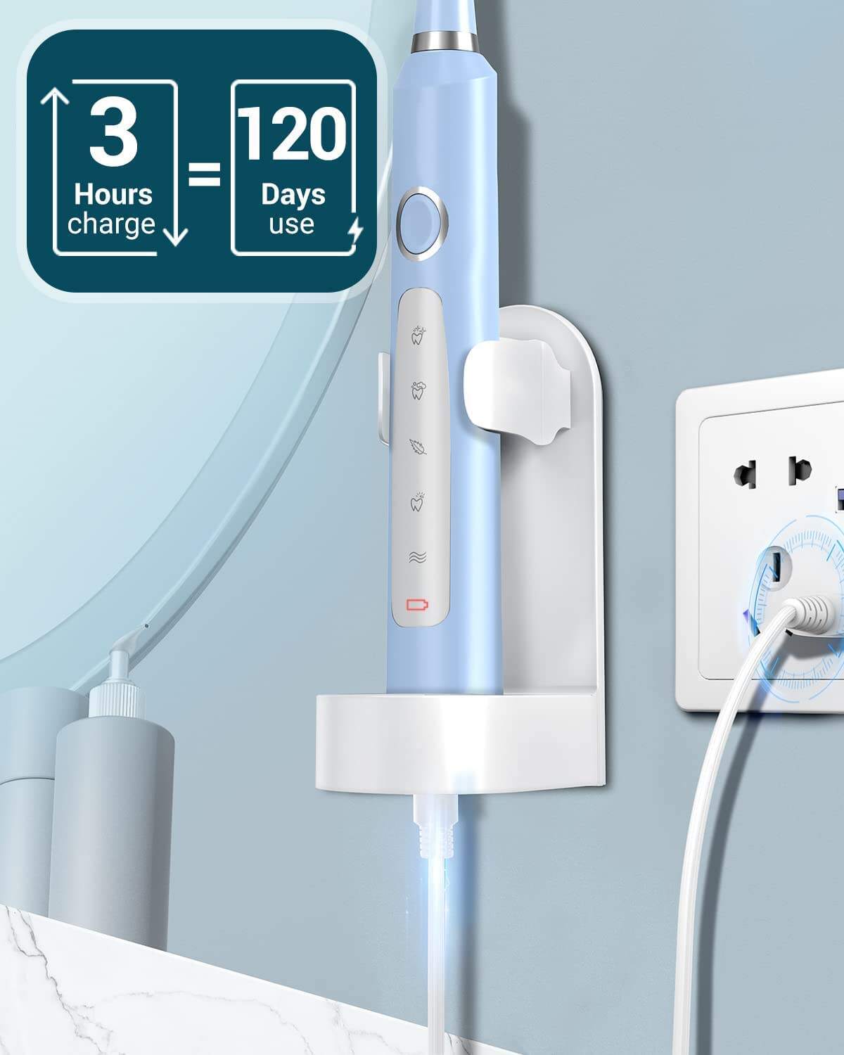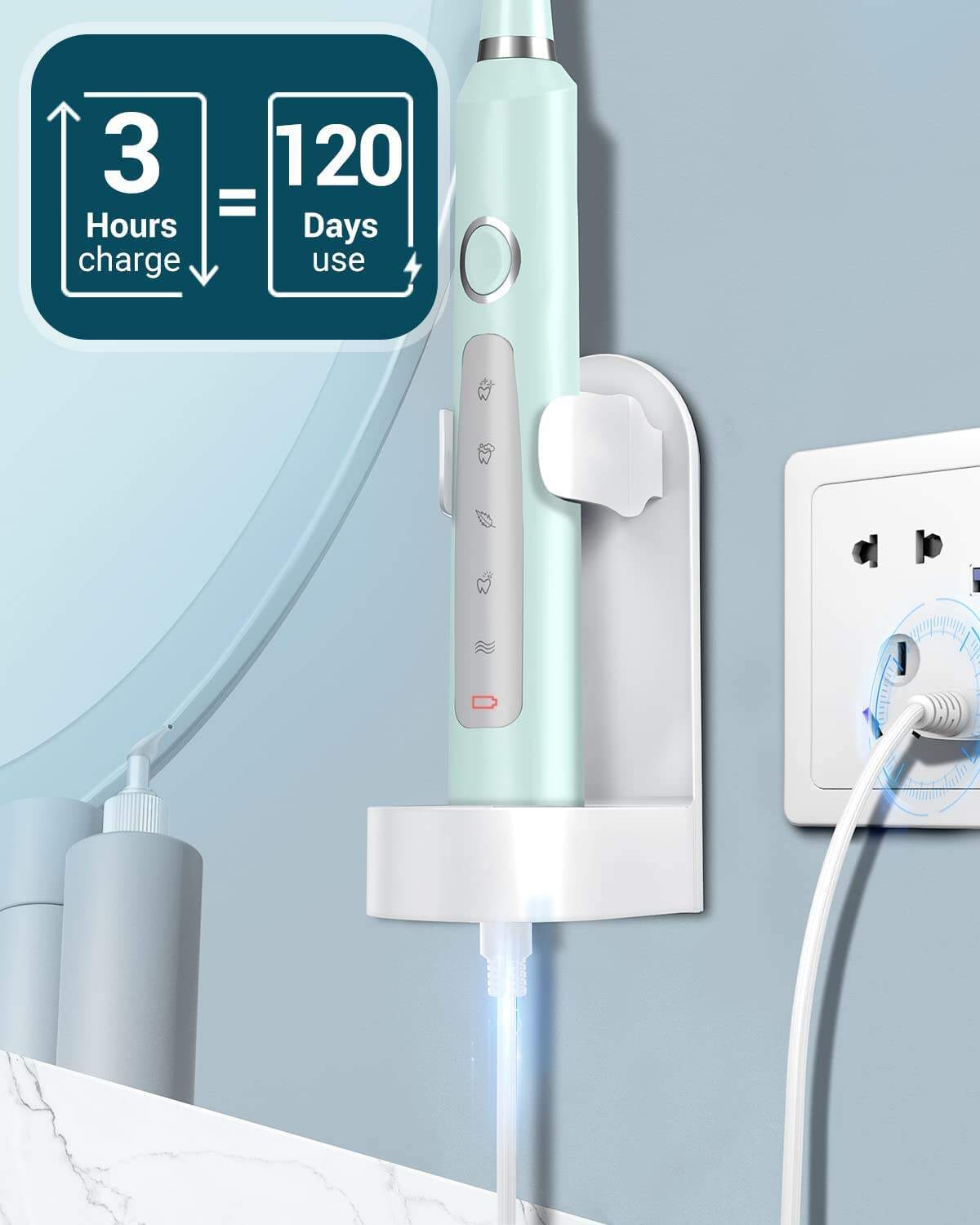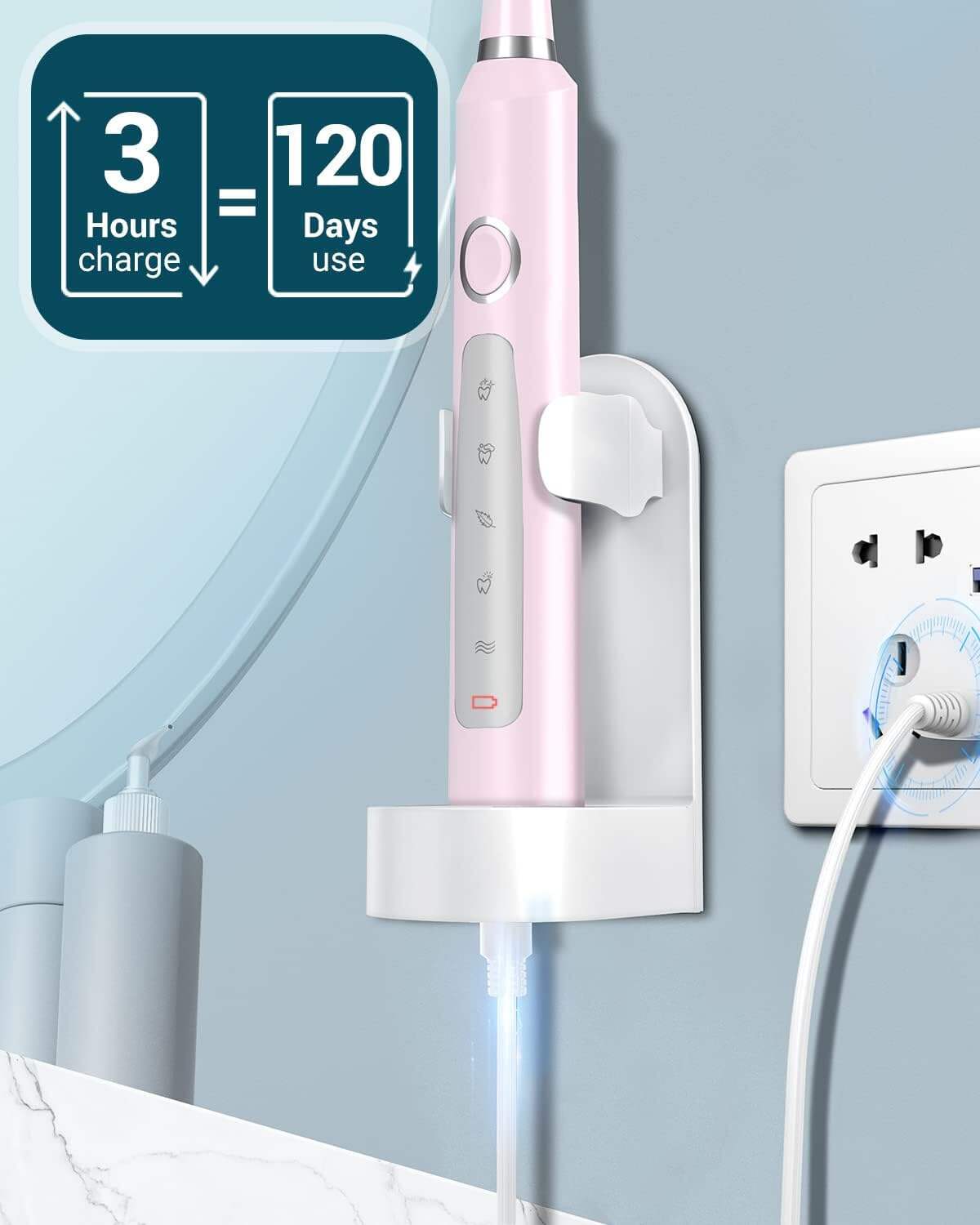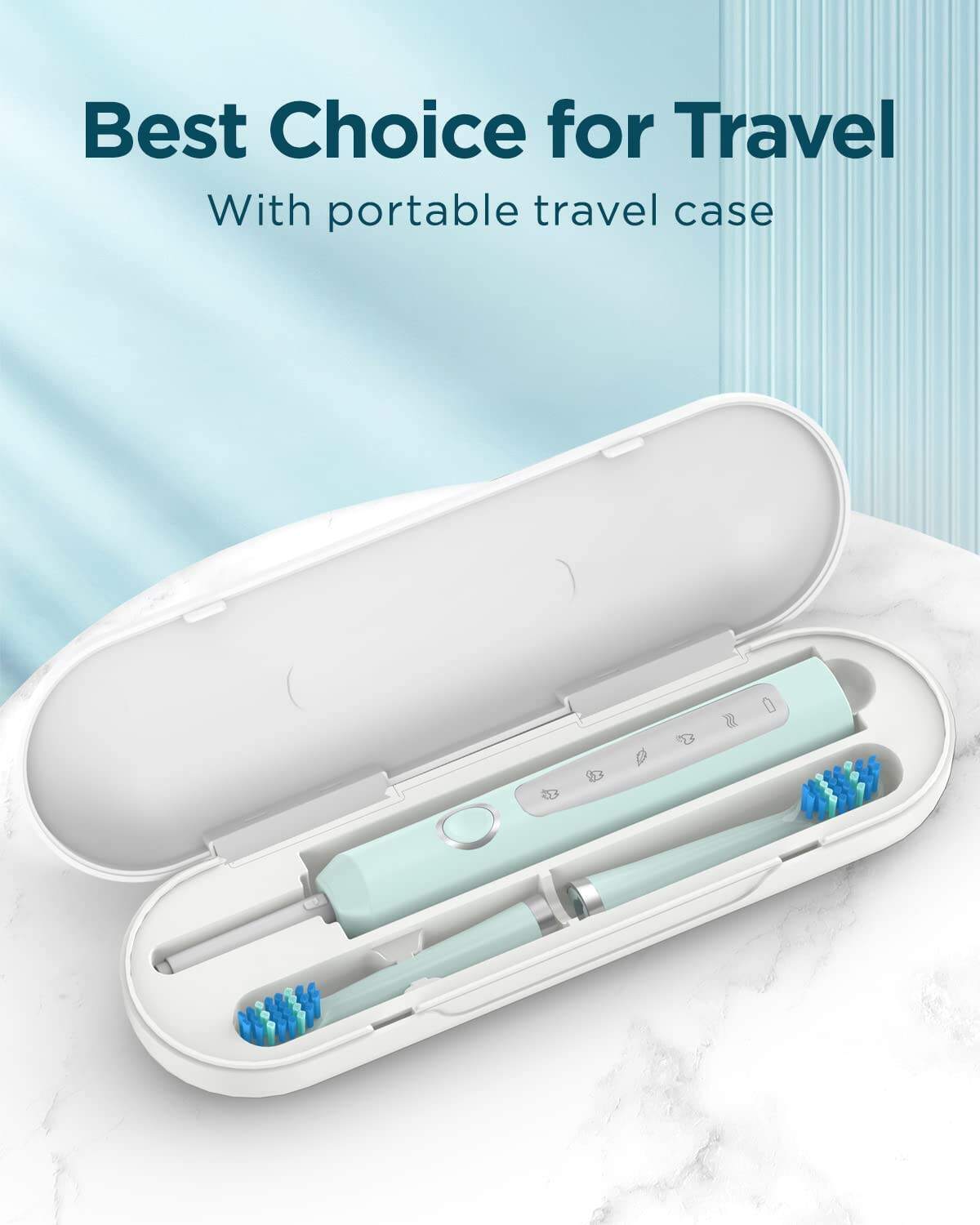 - 🪥120 Days Use & Travel Convenience: Our powerful electric toothbrush only requires 3 hours to fully charge and can last up to 120 days of use. The exquisite and portable travel case and holder make this electric toothbrush perfect for travel and business trips, so you can always maintain good oral hygiene on the go.
