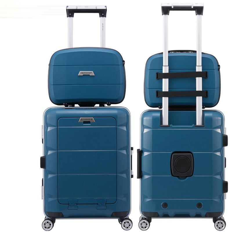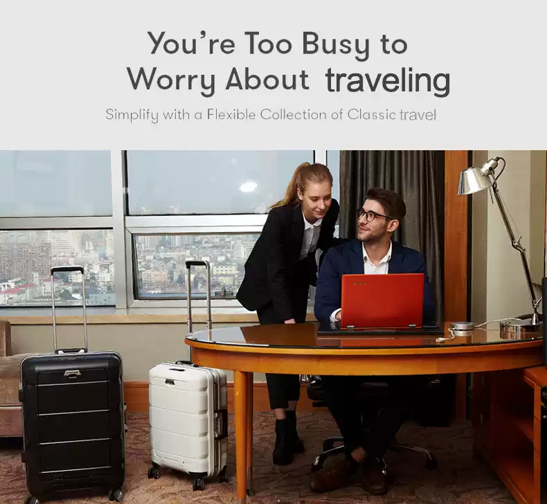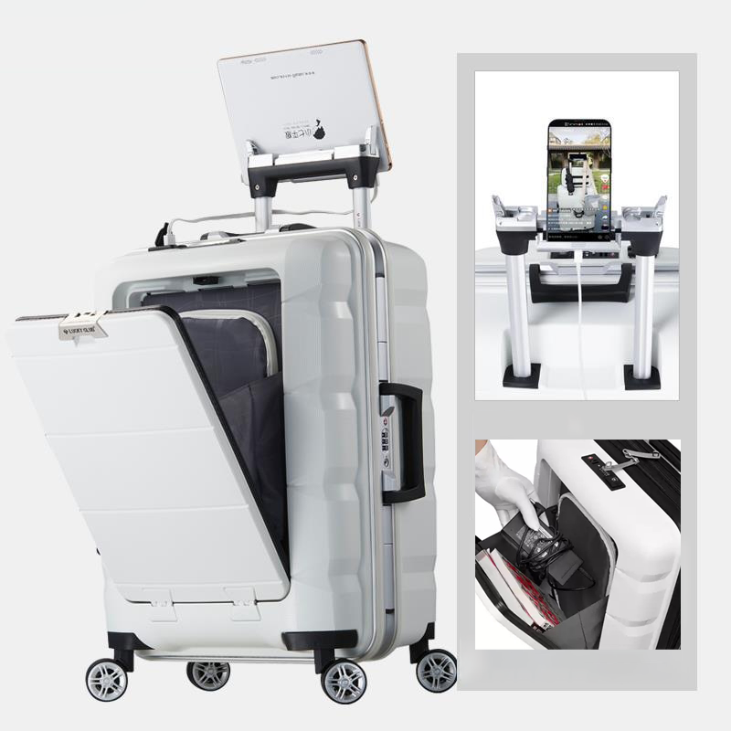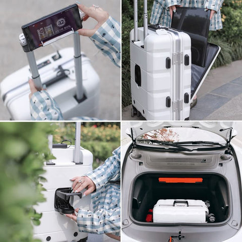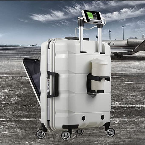 MULTIFUNCTIONAL LUGGAGE SET – This is a multifunctional business travel suitcase set that integrates computer storage, a USB charging port, a cup holder, a hook rod, dry and wet separation, and a mobile phone and tablet holder. It has two styles of aluminum frames and zippers. The zipper type Is Expandable, adding 25% to the scalable space.