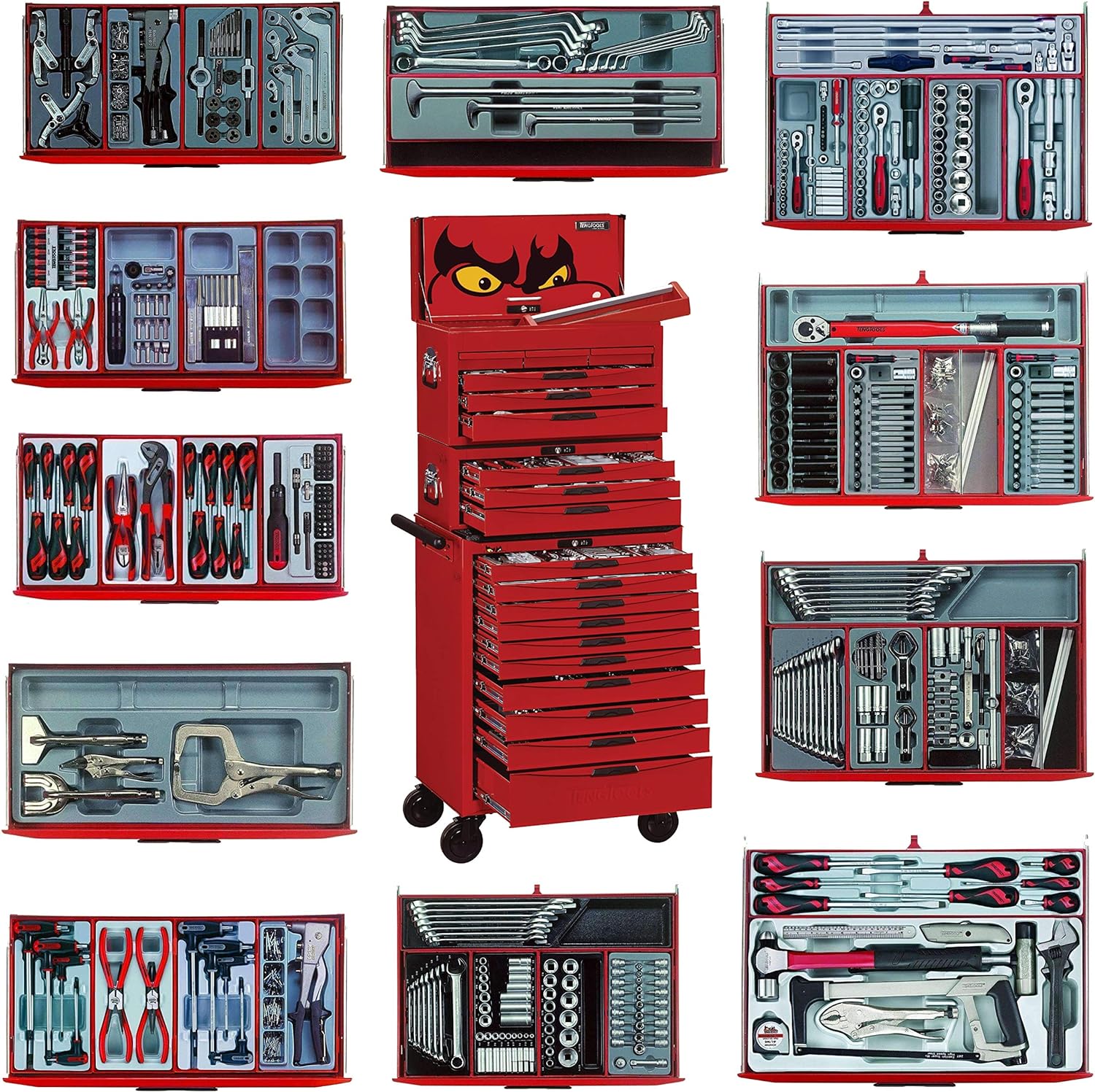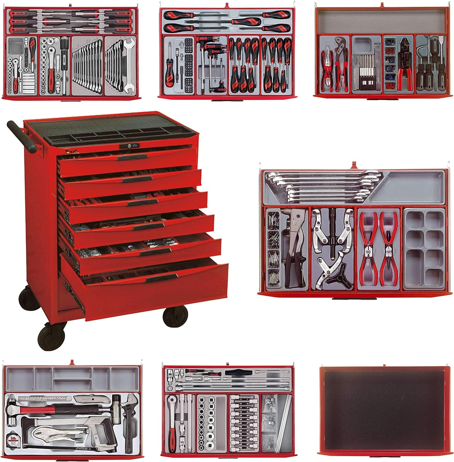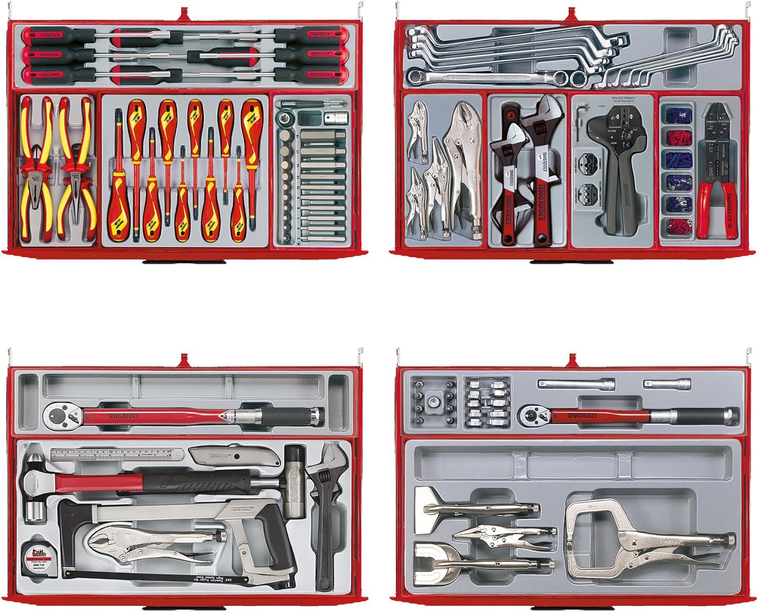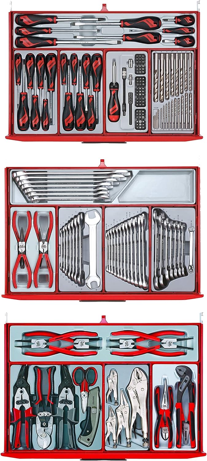 - 87 wrenches/spanners, 135 TX/Hex bits & drivers, 6 empty add on trays, 95 impact tools, 13 extensions, 16 piece mini tool set, 121 piece crimping pliers set