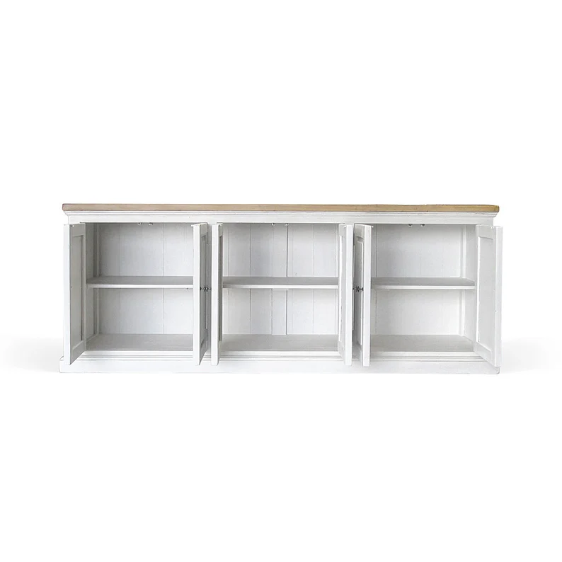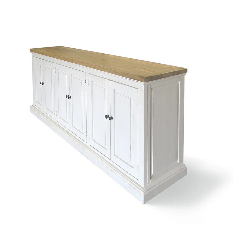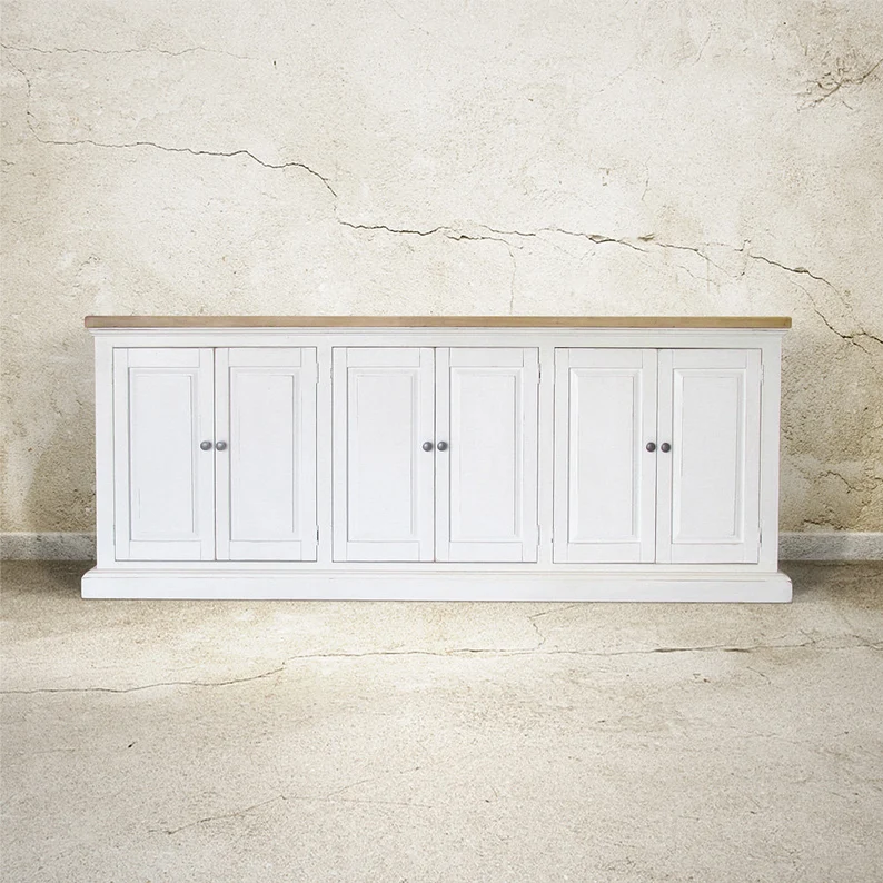 Our Wellington 6 door Console Cabinet is crafted of 100% Solid Old Growth Douglas Fir utilizing Frame-N-Raised Panel construction. Inspired by Old English Manors of the period and updated to provide complete functionality. Shown in our Antique Bright White with a Natural Patina finished Top. Many size and finish options available, please feel free to contact us with any questions.