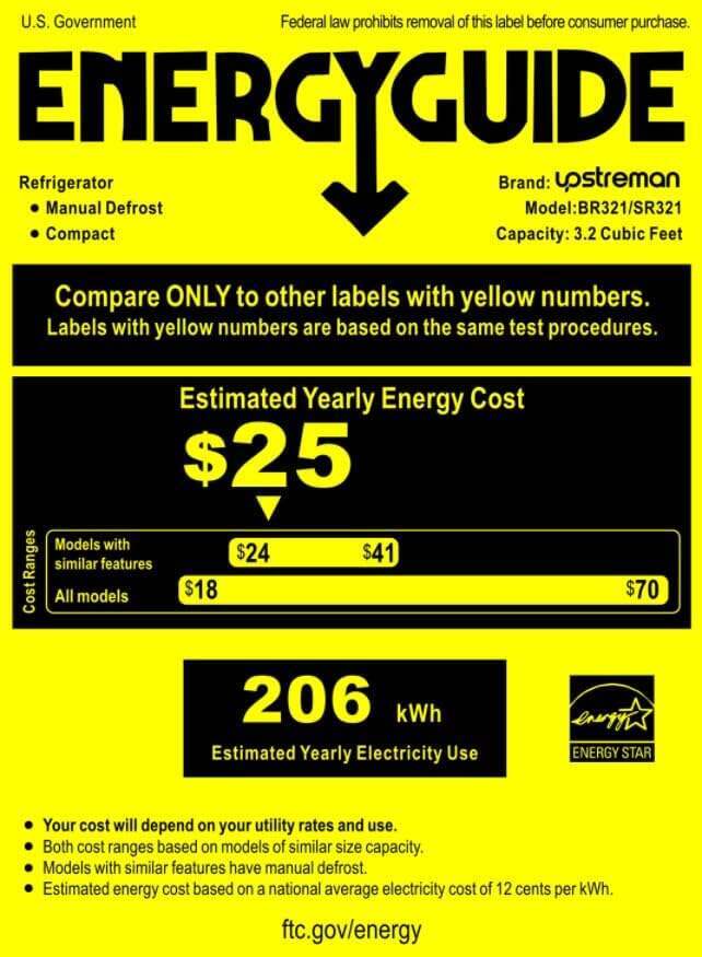 • Accessories & Services: 1 Upstreman 3.2 cubic feet mini fridge with freezer, 2 removable shelves, 1 crisper drawer, 1 ice tray, 1 defrost tool and worry-free customer service.