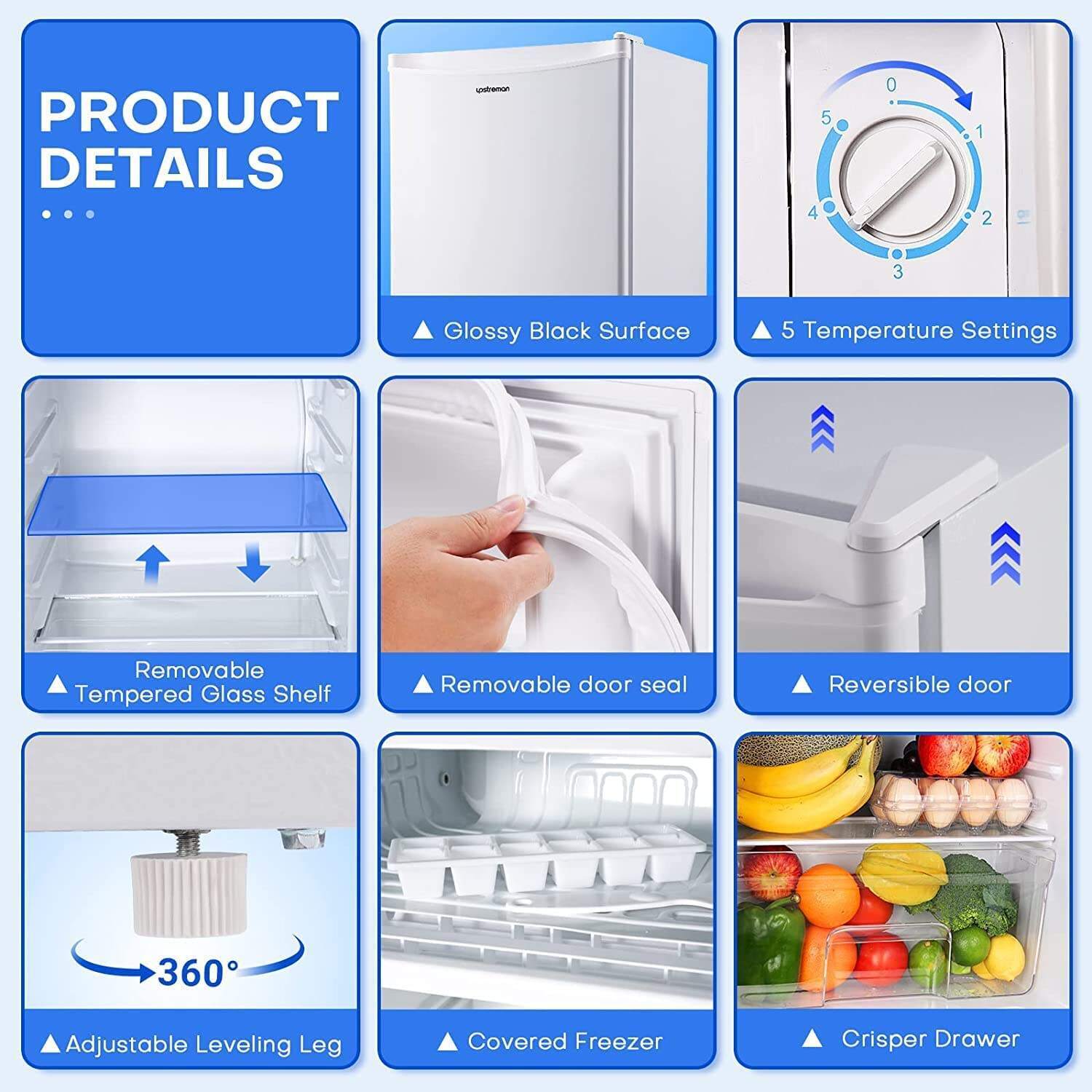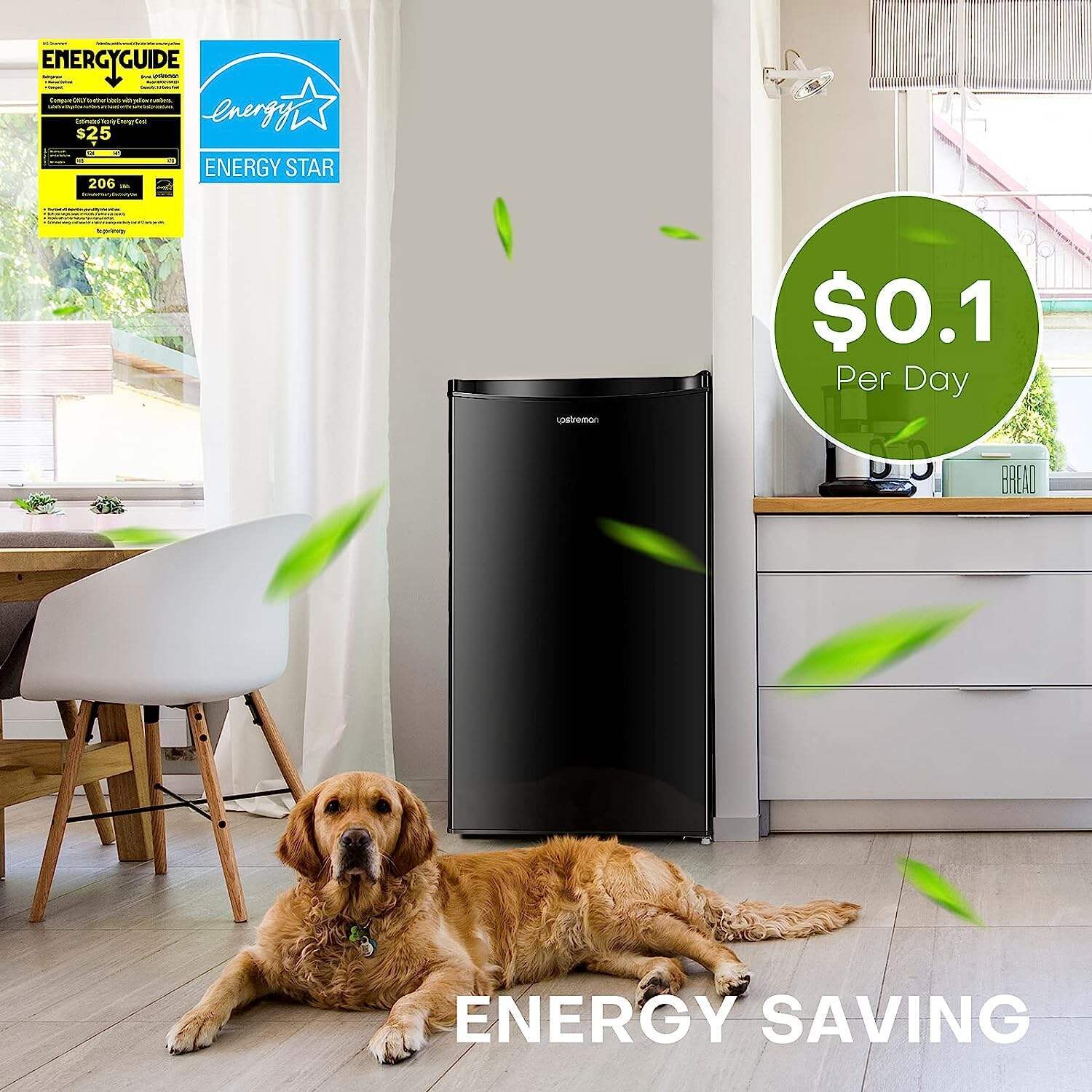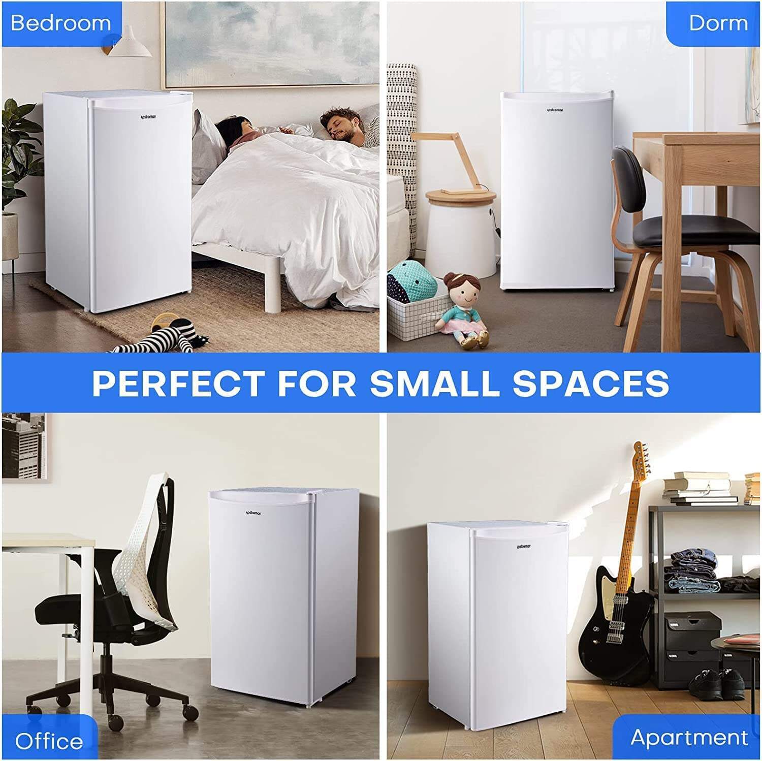 • Upstreman 3.2 Cu.Ft Mini Fridge with Freezer, Single Door, Adjustable Thermostat, Refrigerator for Dorm, Office, Bedroom, Black-BR321