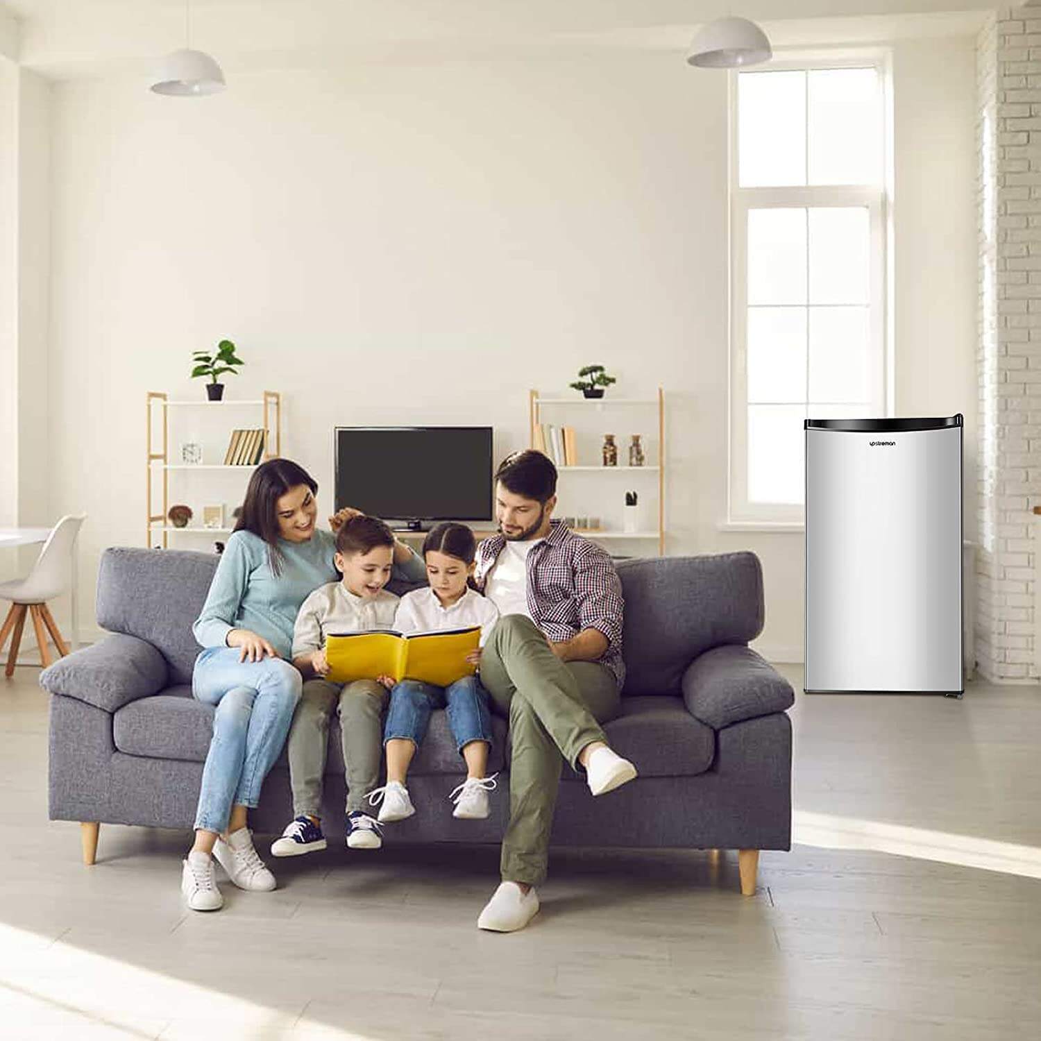 • Crisper Drawer & Removable Shelves: Features a crisper drawer to keep your greens and fruits fresh and juicy. The small fridge storage space is adjustable to practical uses with removable shelves. Arrange these shelves how you see fit and you’d be amazed how much the small fridge can stores.