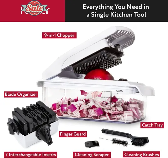 - Best functionality on the market - Everything you need are all in our all-in-one multipurpose cooking gadgets. 7 easy to change inserts including two different sized chopper blades and two spiralizer inserts give you the option of broad ribbons or thin spirals. Our vegetable choppers make nifty cooking gifts for women and men.