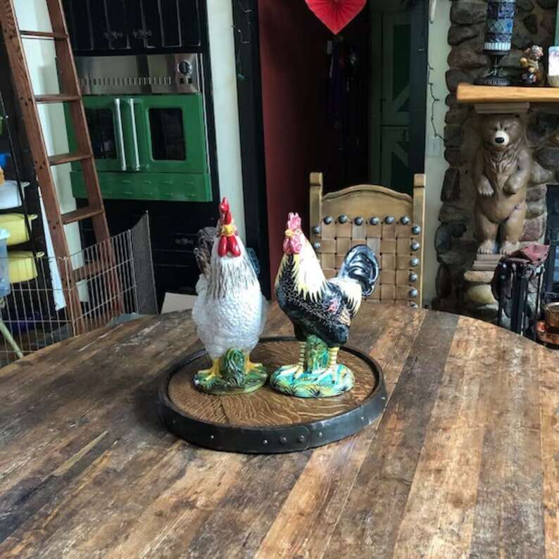 Handcrafted Lazy Susan, made from an authentic used oak whiskey barrel. Because these Lazy Susans are crafted using actual used whiskey barrels, there will always be unique variations to the look and colors of the Items. This gives them the sought after, rustic look that is unable to be duplicated. Each Lazy Susan is hand sanded, stained, and finished with a coat of polyurethane.