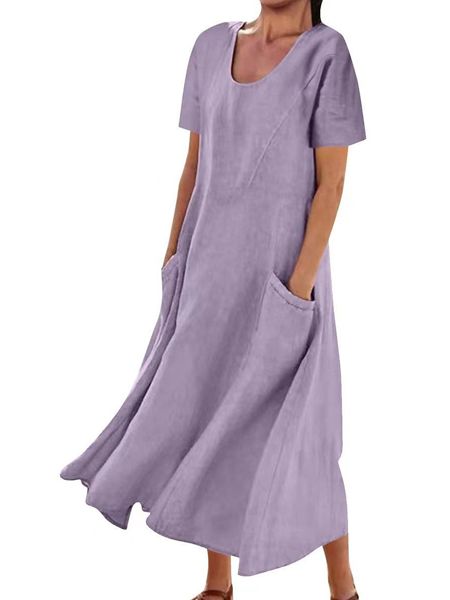 Gender:Women's, Style:Fashion,Casual,Classic, Occasion:Outdoor,Daily,Vacation, Dresses Type:Casual Dress,Cotton Linen Dress,Swing Dress, Neckline:Crew Neck, Fabric:Linen,Cotton Blend, Design:Pocket, Sleeve Length:Short Sleeve, Elasticity:Micro-elastic, Look After Me:Machine wash, Pattern:Plain, Season:Summer,Spring, Dress Length Type:Maxi long Dress, Fit Type:Loose Fit, 2023 Trends:2023,