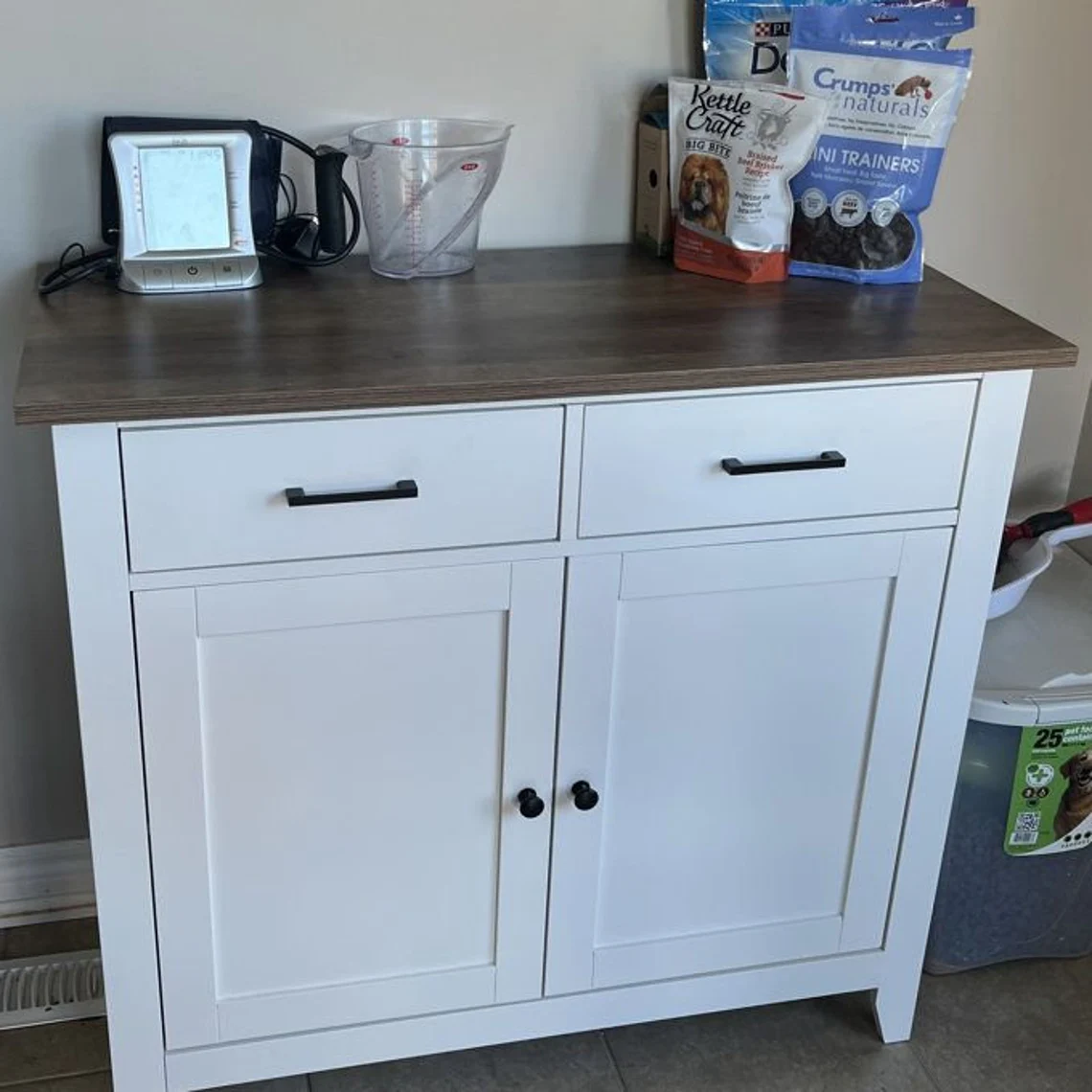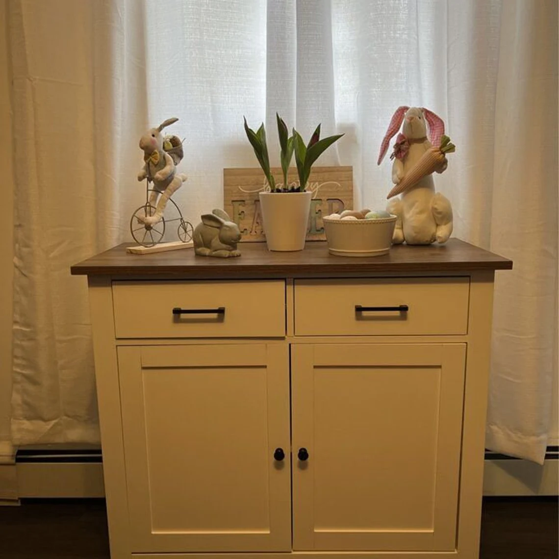 -Excellent appearance - With an ivory white body, wood top, and classic black handles, this sideboard can bring a unique finishing touch to your home.