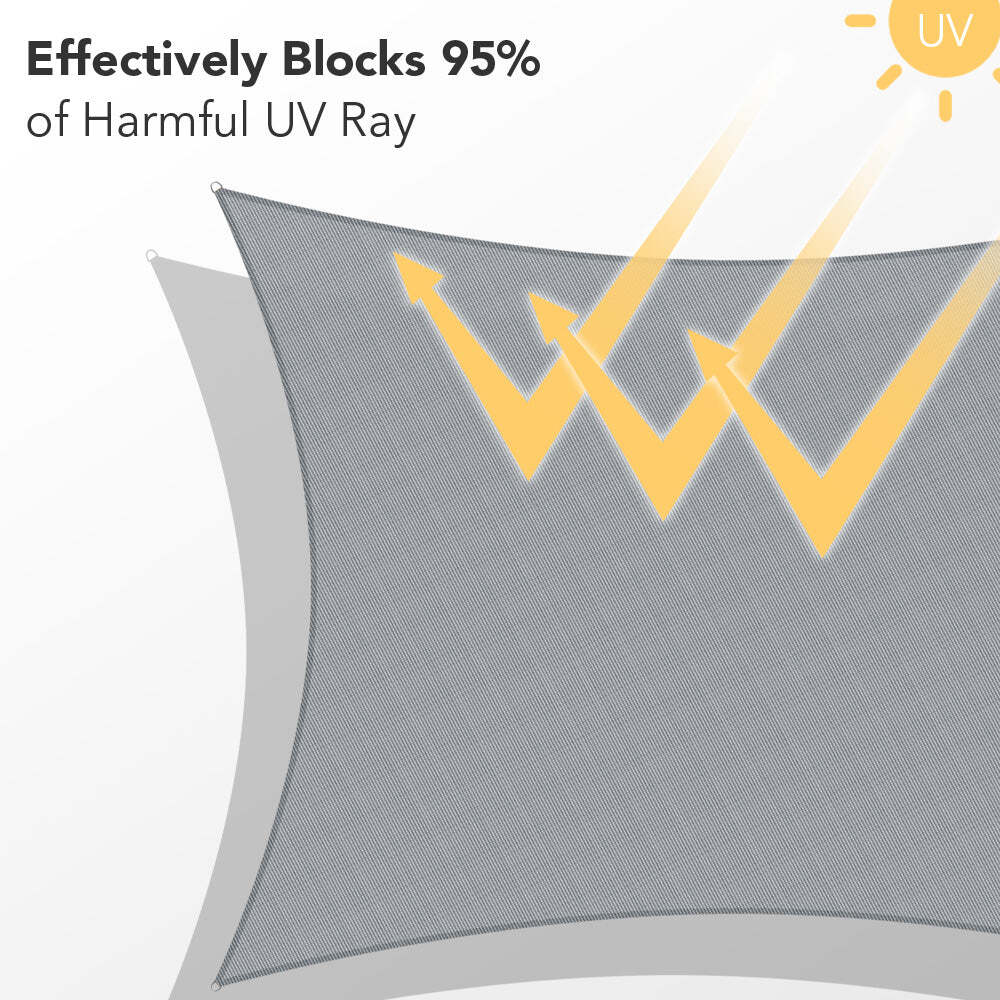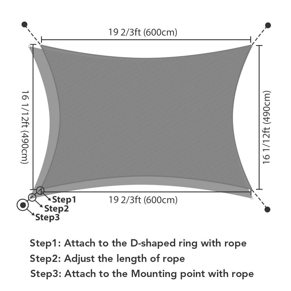 This 20' x 16' Rectangle Sun Shading Sail Tarpaulins and Ropes with knitted fabric can block harmful sun rays yet remains totally unaffected by moisture and nature temperature extremes. The best way to expand your outdoor enjoyment without absorbing UV rays which cause serious sunburns or even skin cancers.