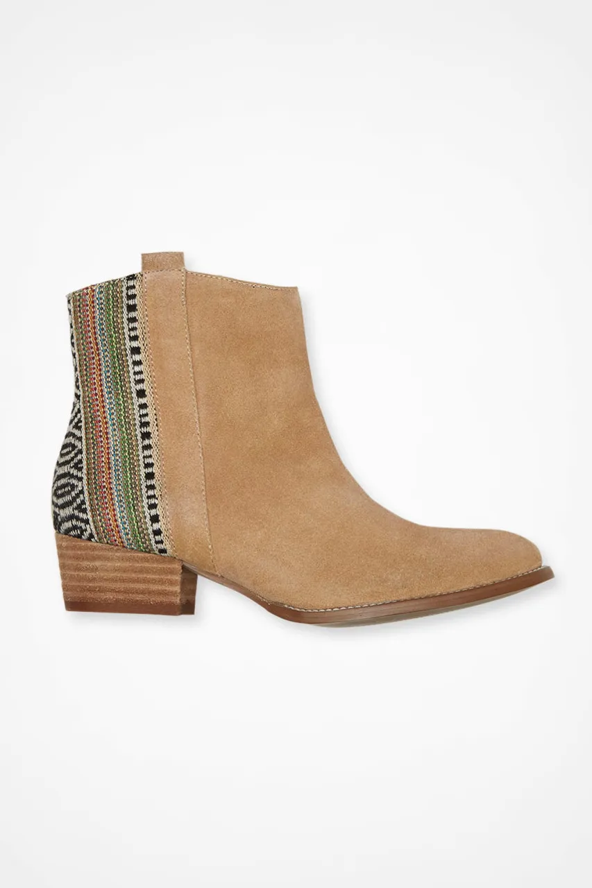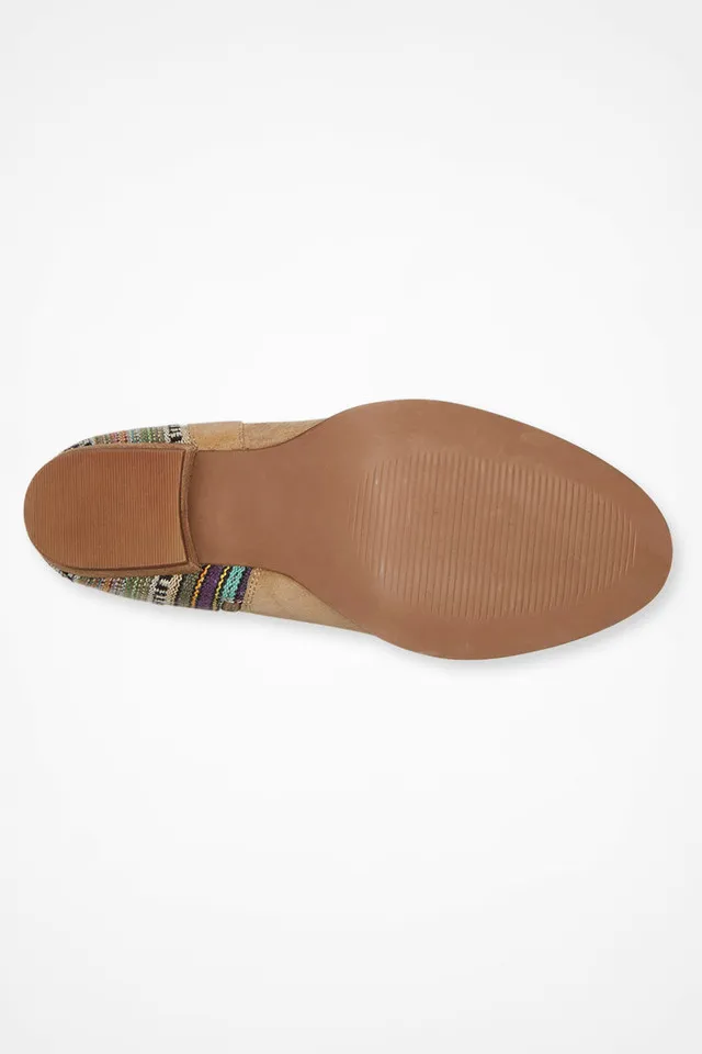 Express yourself with a pop of artistry. Our spirited suede boots are detailed with textured fabric at the back, and inside zip closures for easy on/off.