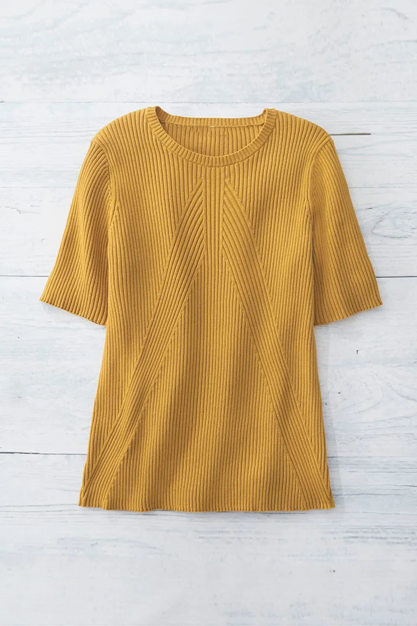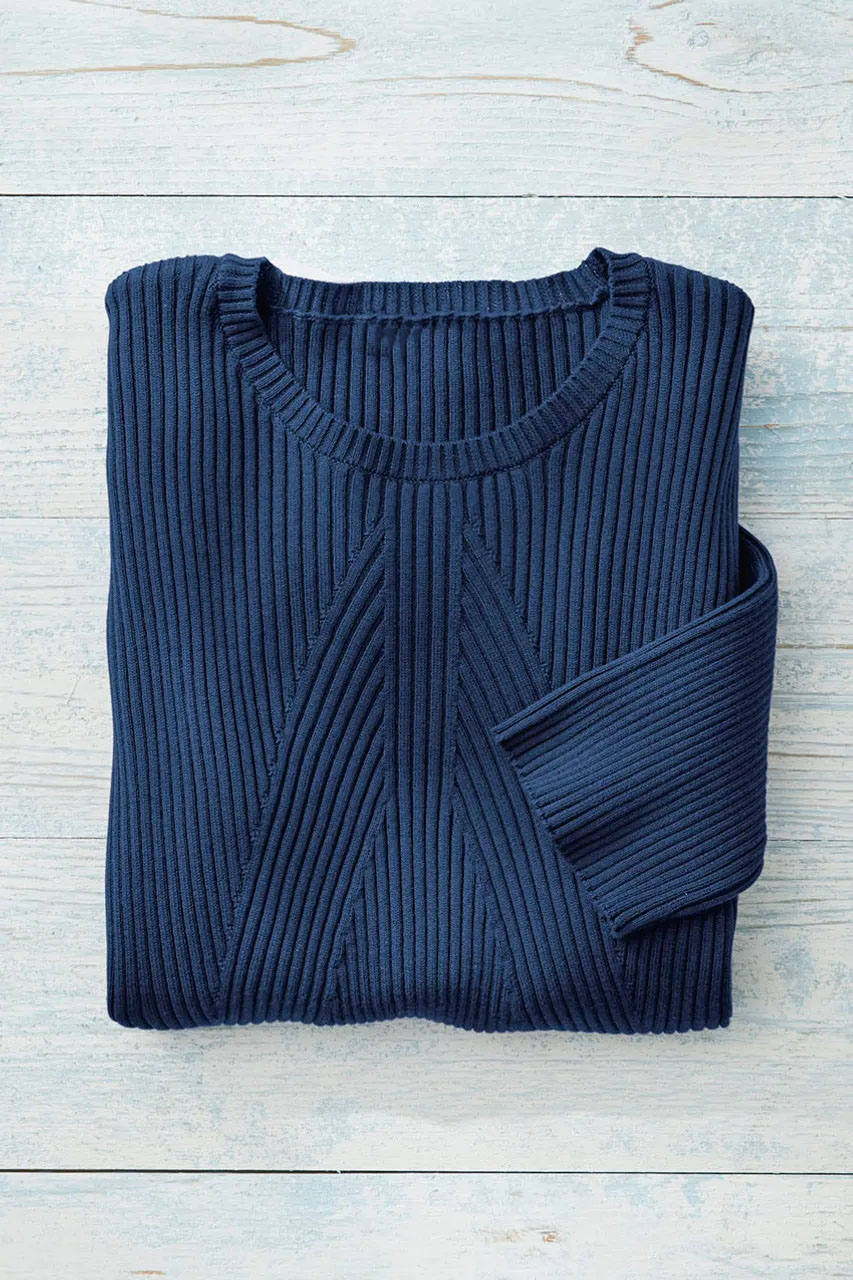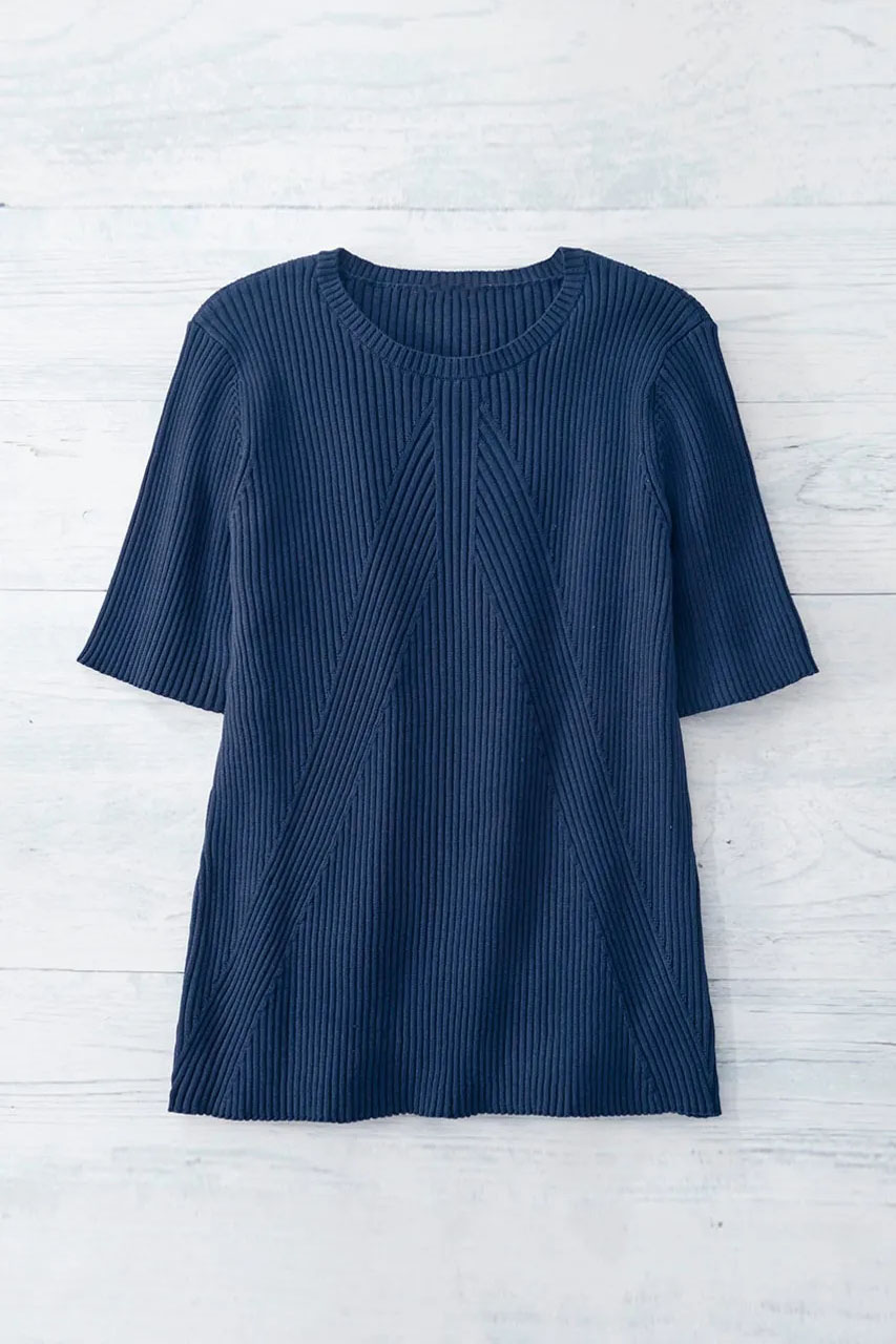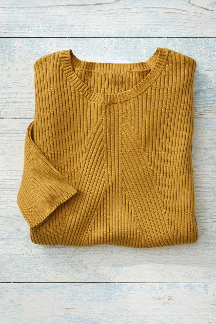 Ingeniously flattering and versatile, this sweater is the perfect go-between – from season to season, to layer or not, and from day to evening. Angled front ribbing, elbow-length sleeves.