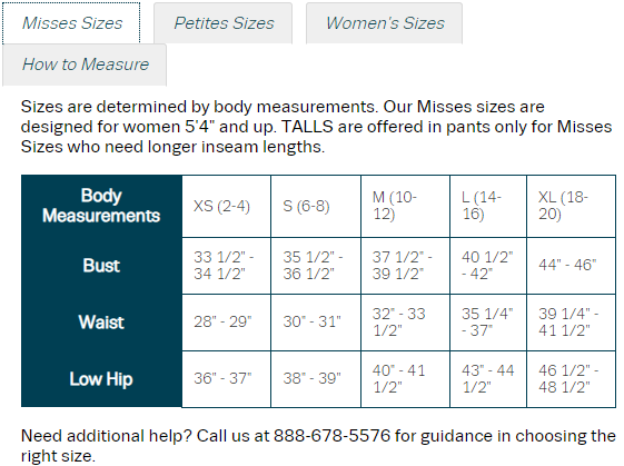 • Misses (31" long); Petites (29"); Women’s (32")