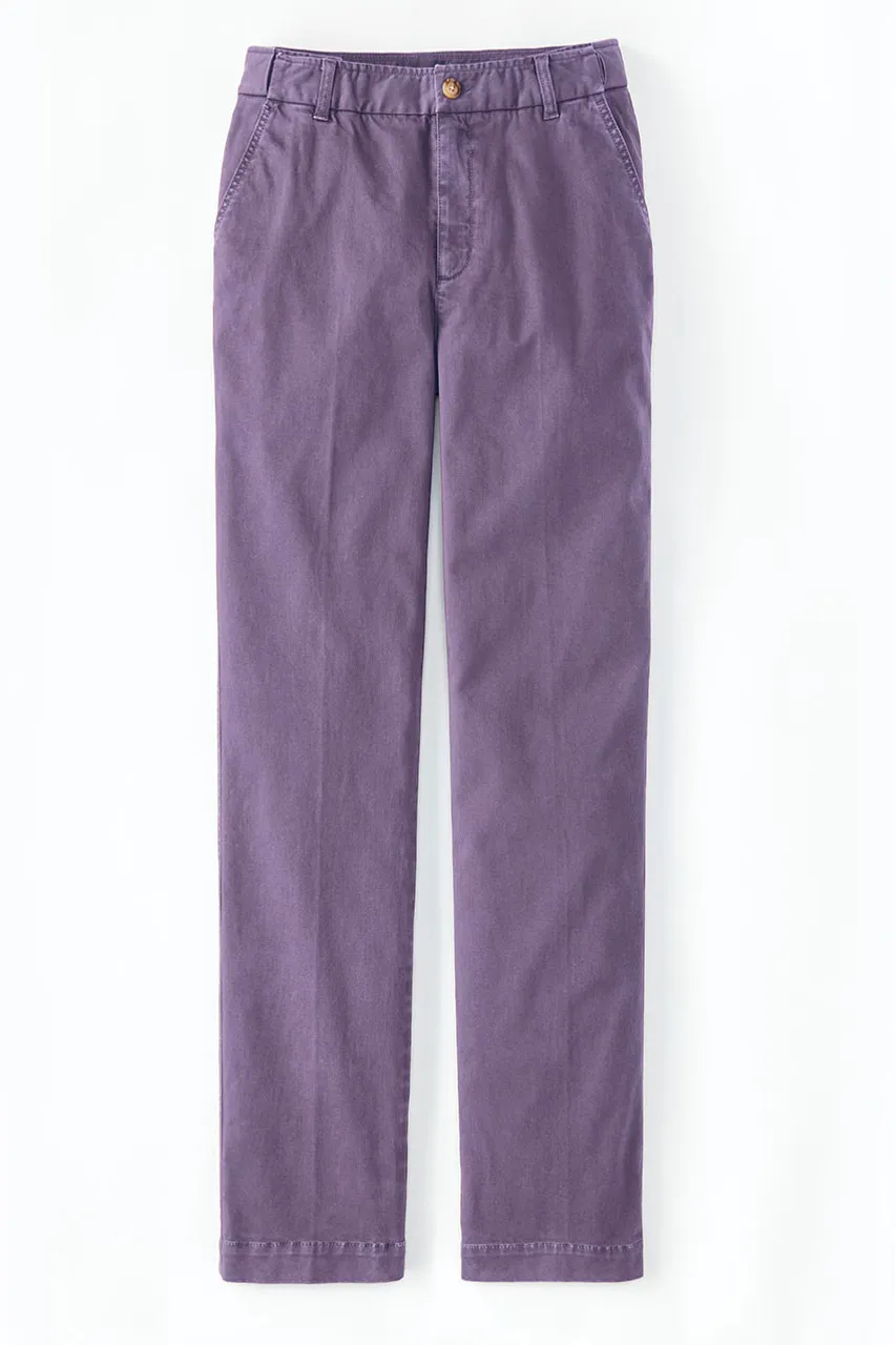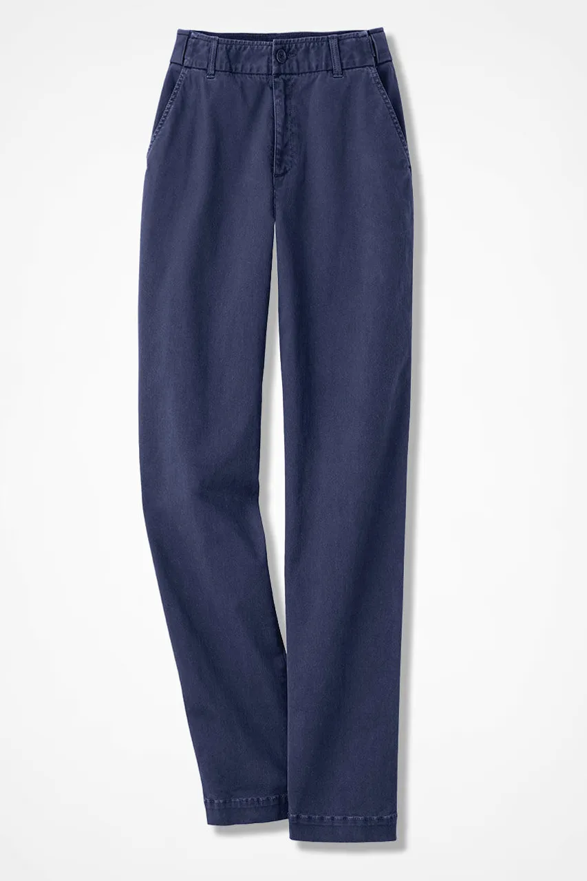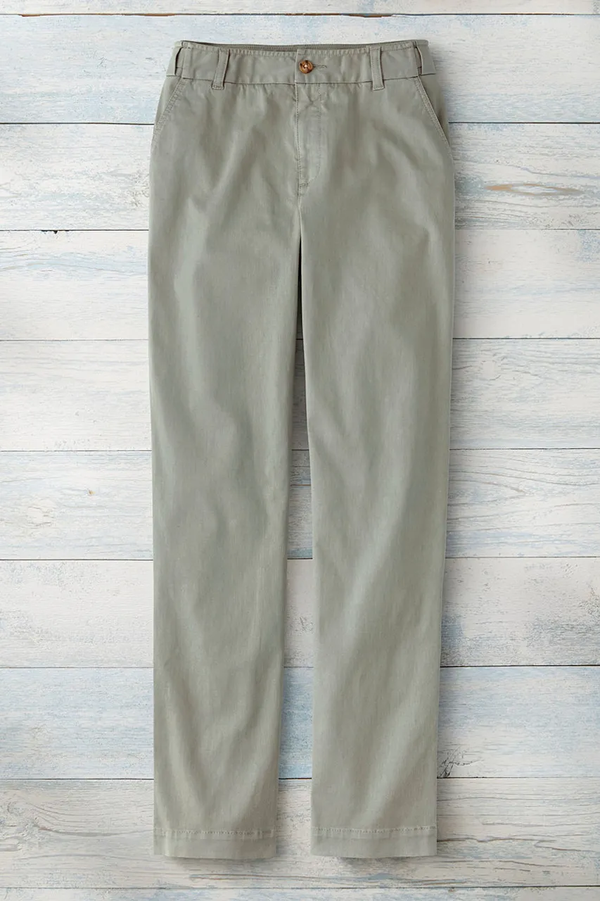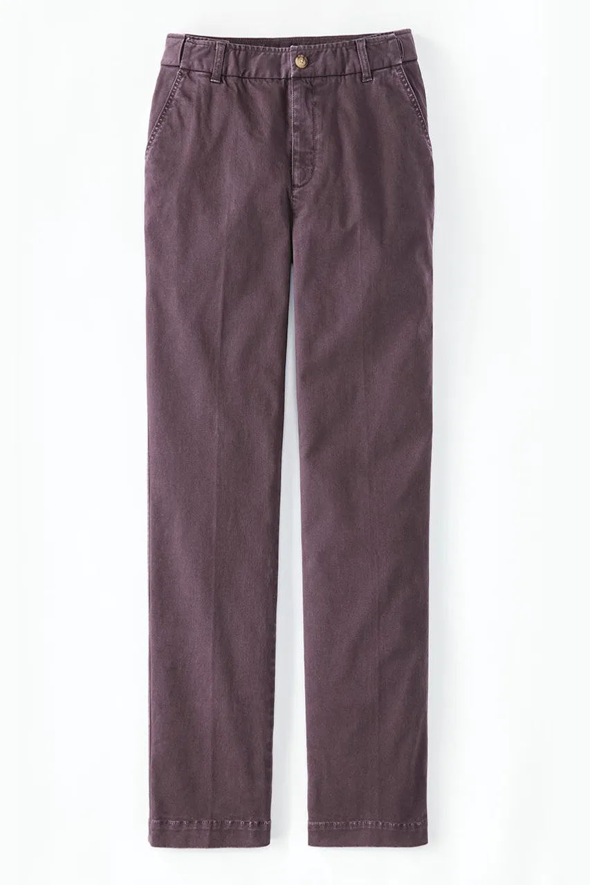 Our everyday chinos, with hidden side elastic bands that expand up to 4" at the waist. Fly front with double-button closure.