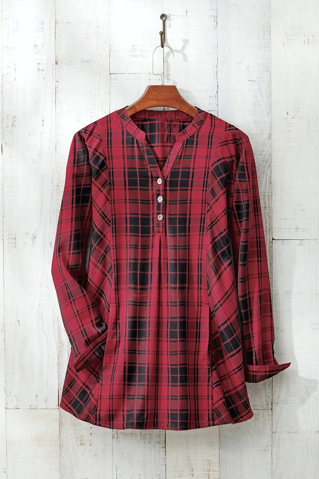 Plaid perfection, with a mixed pattern placement in an easy popover silhouette. Soft-brushed and lightweight.