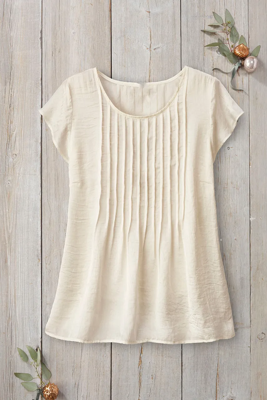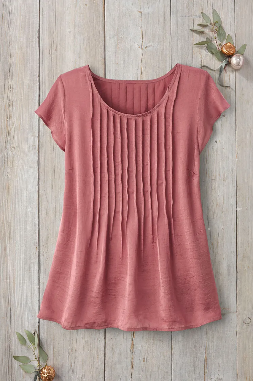 Soft as moon-sheen in hammered satin, this slipover top drapes easily with front and back pintucks. Beautiful solo or as a dressed-up layer.