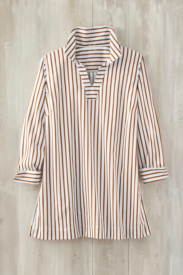 Great news for no-iron! Our new, lighter fabric has the wrinkle-free ease you love, with a softer, drapier feel. Pullover style has 3/4 split-cuff sleeves, side slits. Back yoke with inverted pleat.