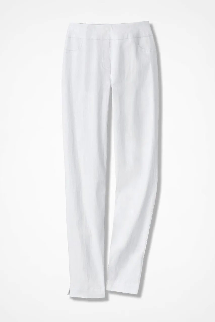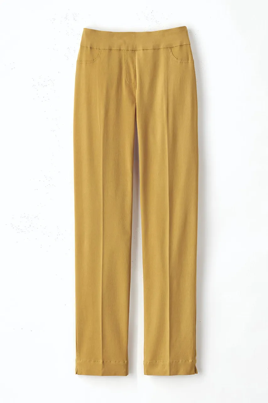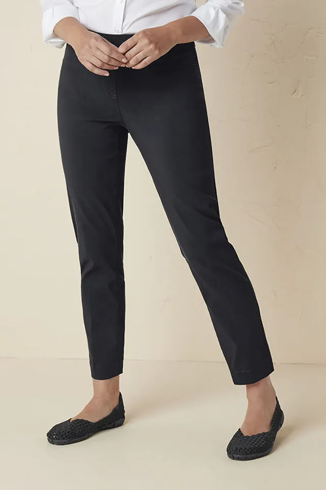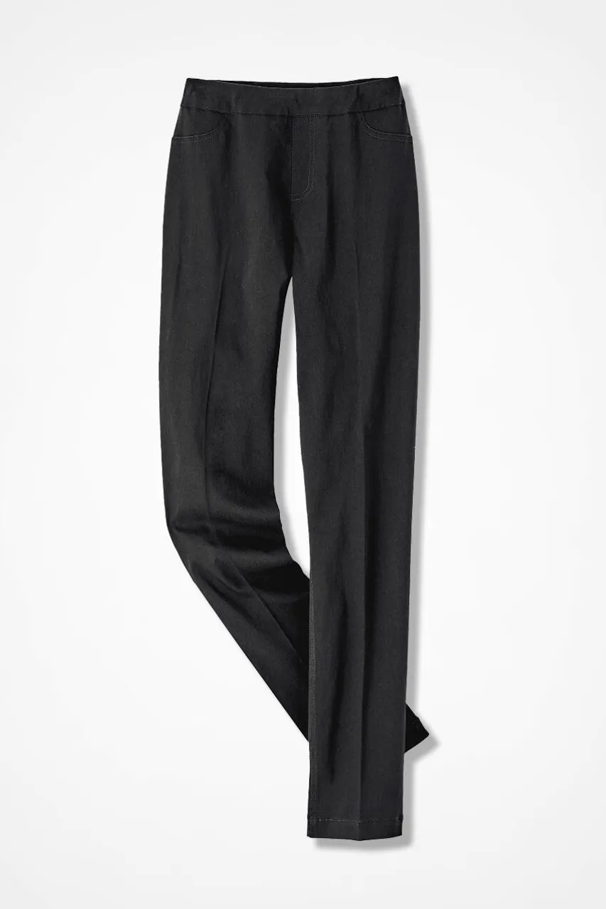 Sleek pull-on pants have a hidden, flexible tummy control panel to trim you comfortably. Slim lines fit close to the body while stretch fabric moves with you, resists wrinkles and retains its shape wear after wear. Faux front pockets and fly, back patch pockets. Imported