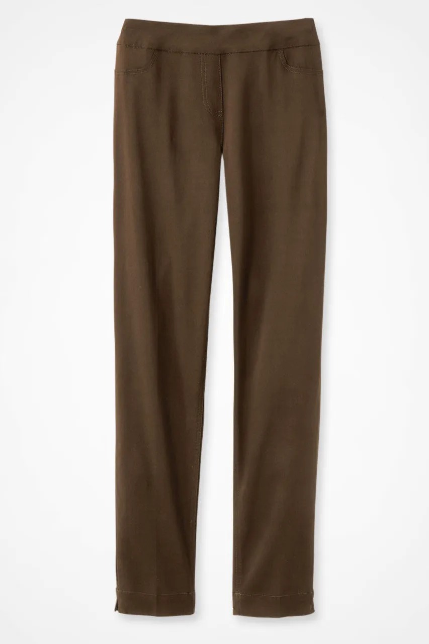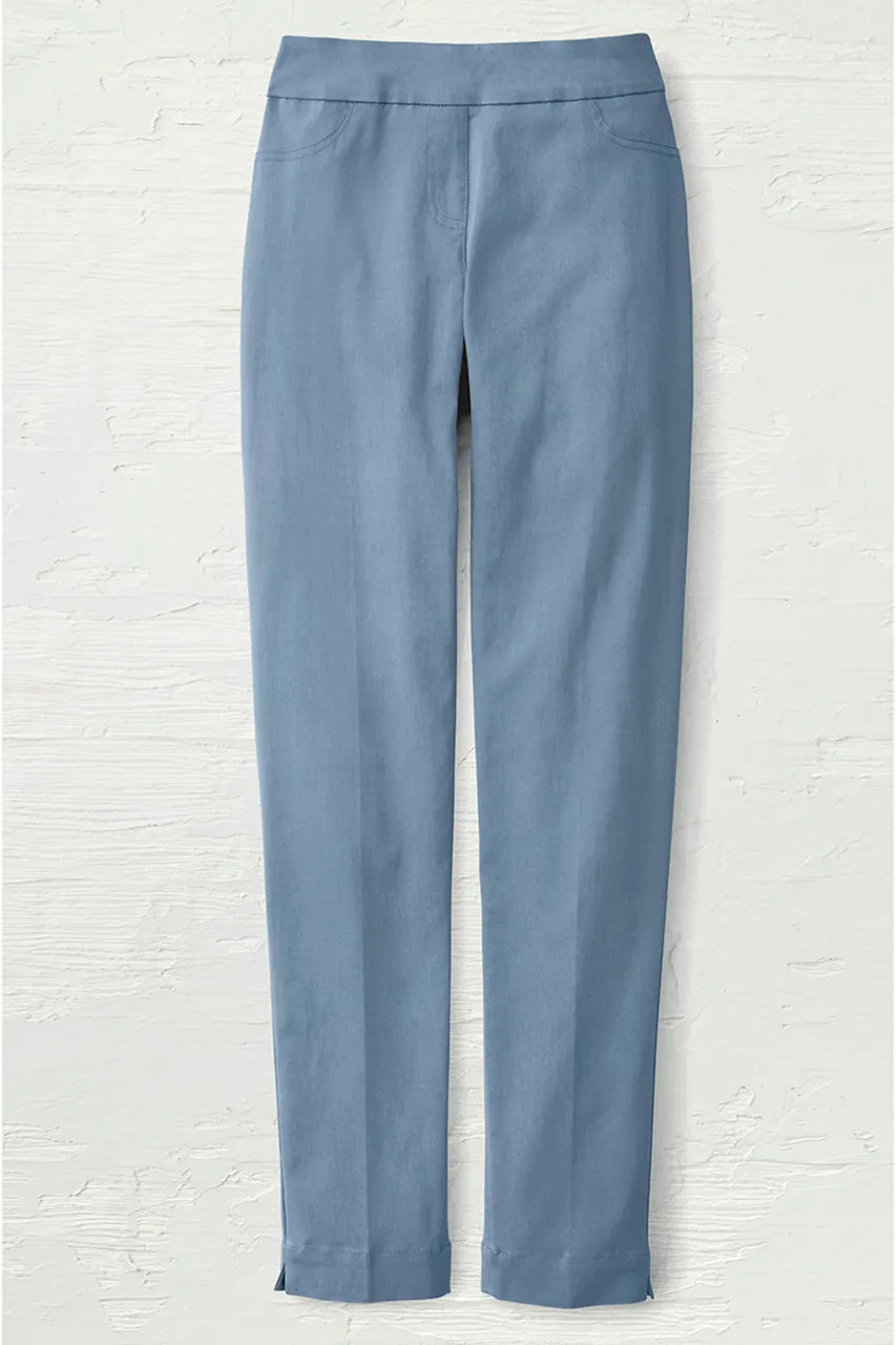 Look (and feel!) 10 pounds lighter �?instantly! Sleek pull-on pants have a hidden, flexible tummy control panel to trim you comfortably. Stretch fabric moves with you, resists wrinkles and retains its shape wear after wear. Faux front pockets and fly. Imported.