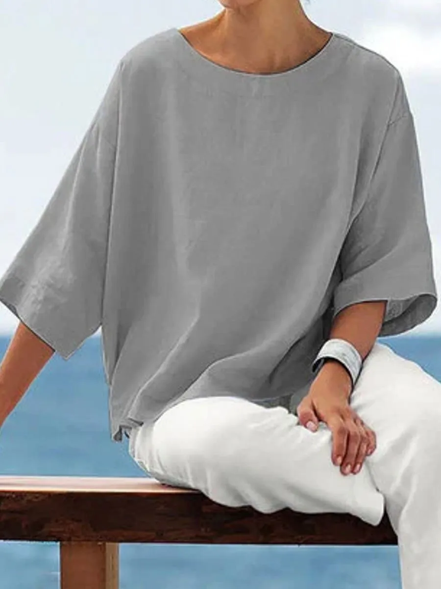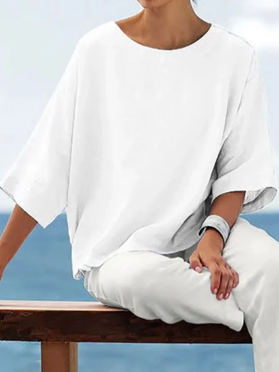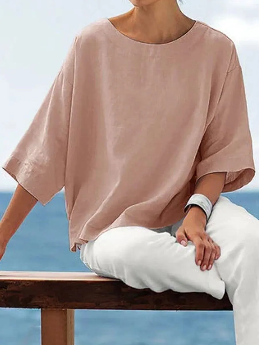 Round Neck Solid Color Simple Fashion Blouse