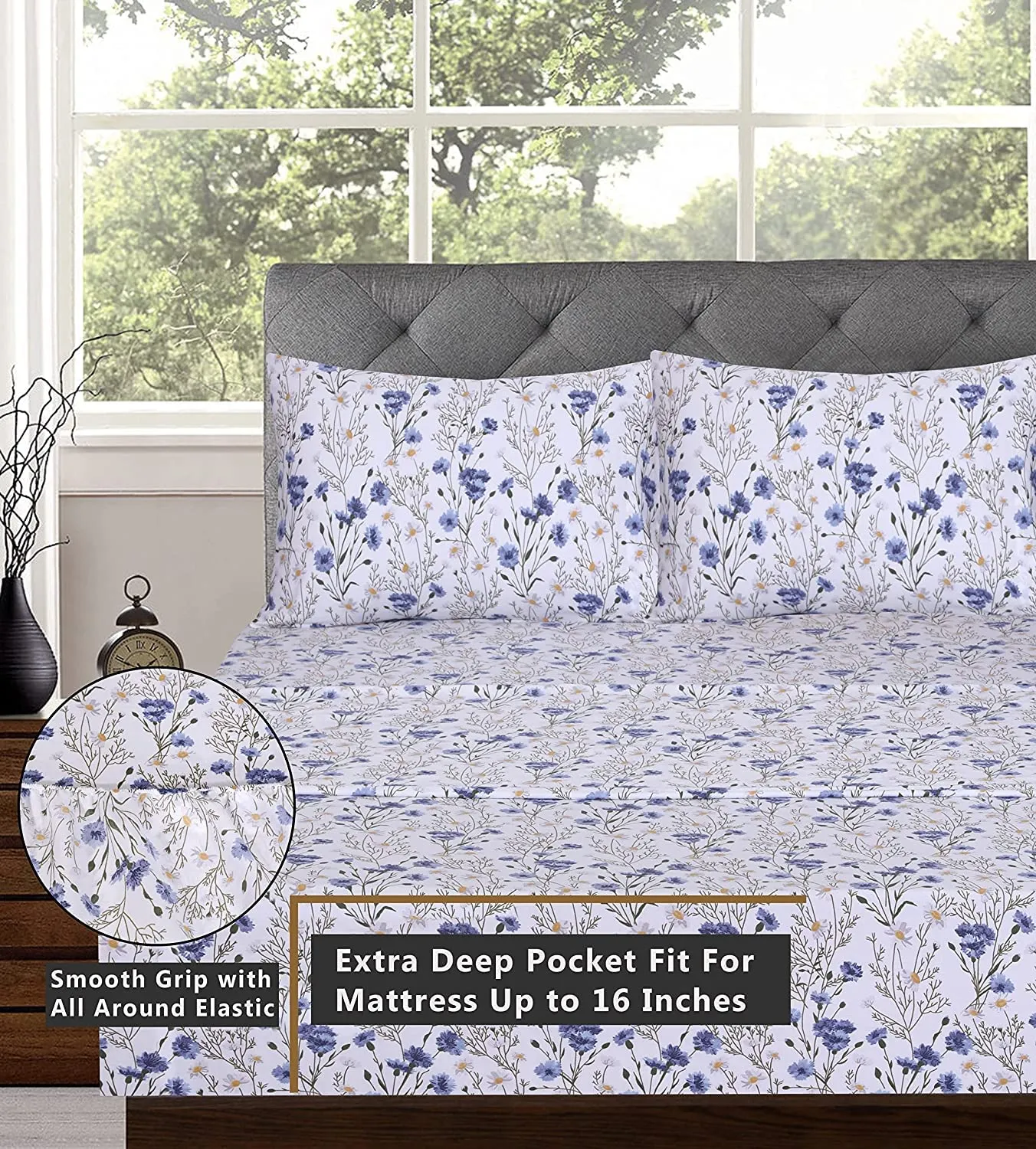 GREAT FIT EASY CARE: These DEEP POCKET sheets come with fully elasticized fitted sheets that fit mattresses up to 16 inches deep. Elastic is stitched around the whole sheet which ensures a snug fit and keeps it from slipping off of the mattress. Easy Care and Easy Wash, Extremely Durable & Long Lasting, Machine Washable, shrink-resistant fabric.