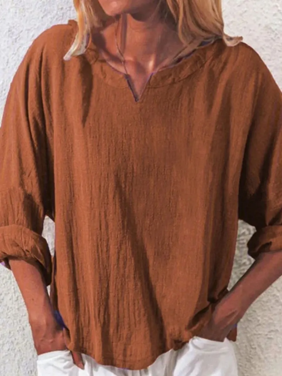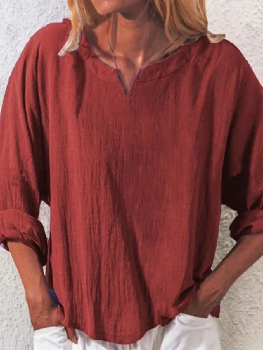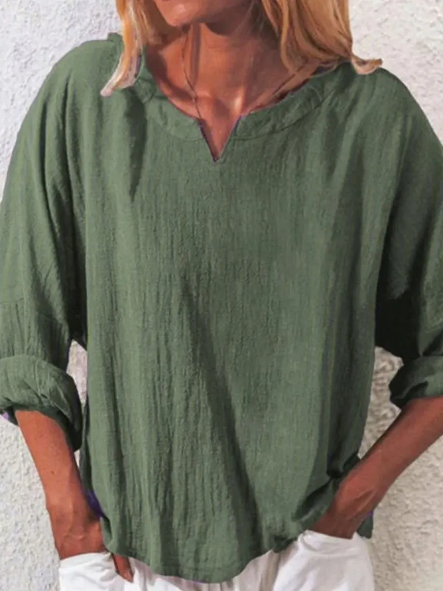 V-neck Casual Loose Solid Color Long-sleeved Blouse