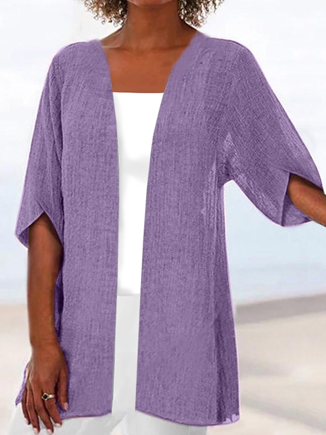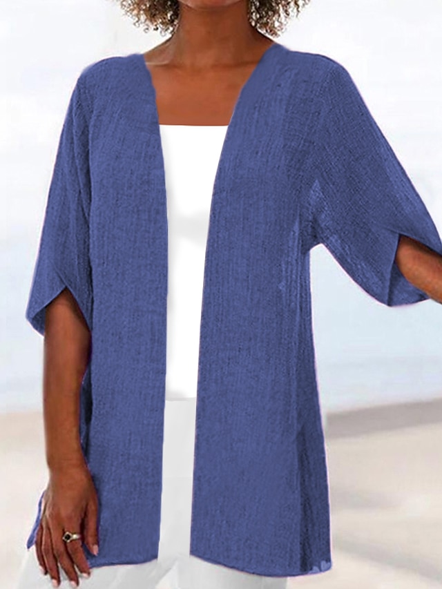 • Women's Casual Jacket Dailywear V Neck Solid Color Comfortable Designer Outerwear Long Sleeve Summer Blue S