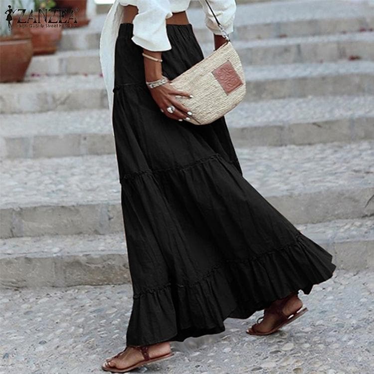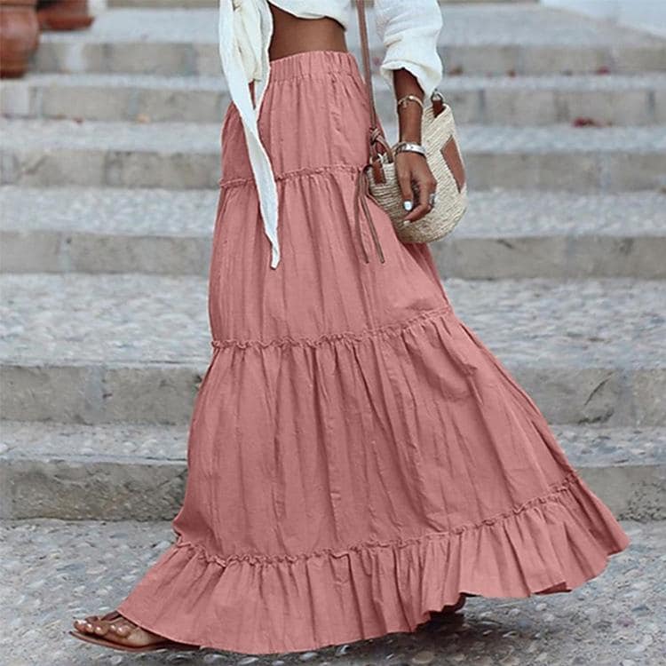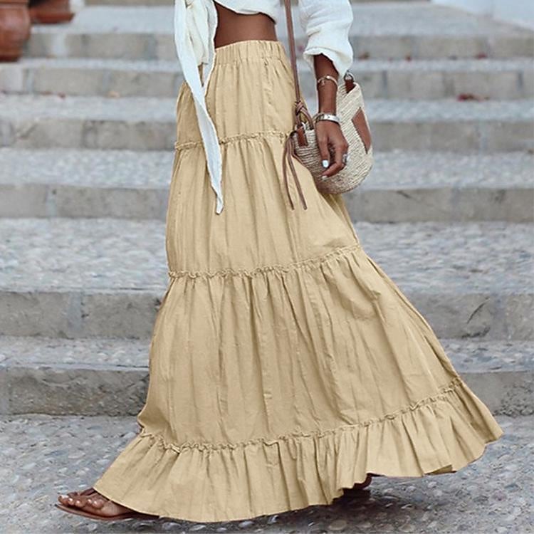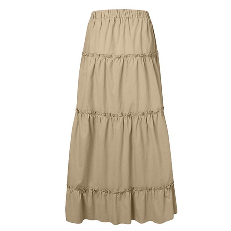 • Women's Skirt Swing Maxi Cotton Blend Black Pink khaki Skirts Ruffle Fashion Casual Daily S M L