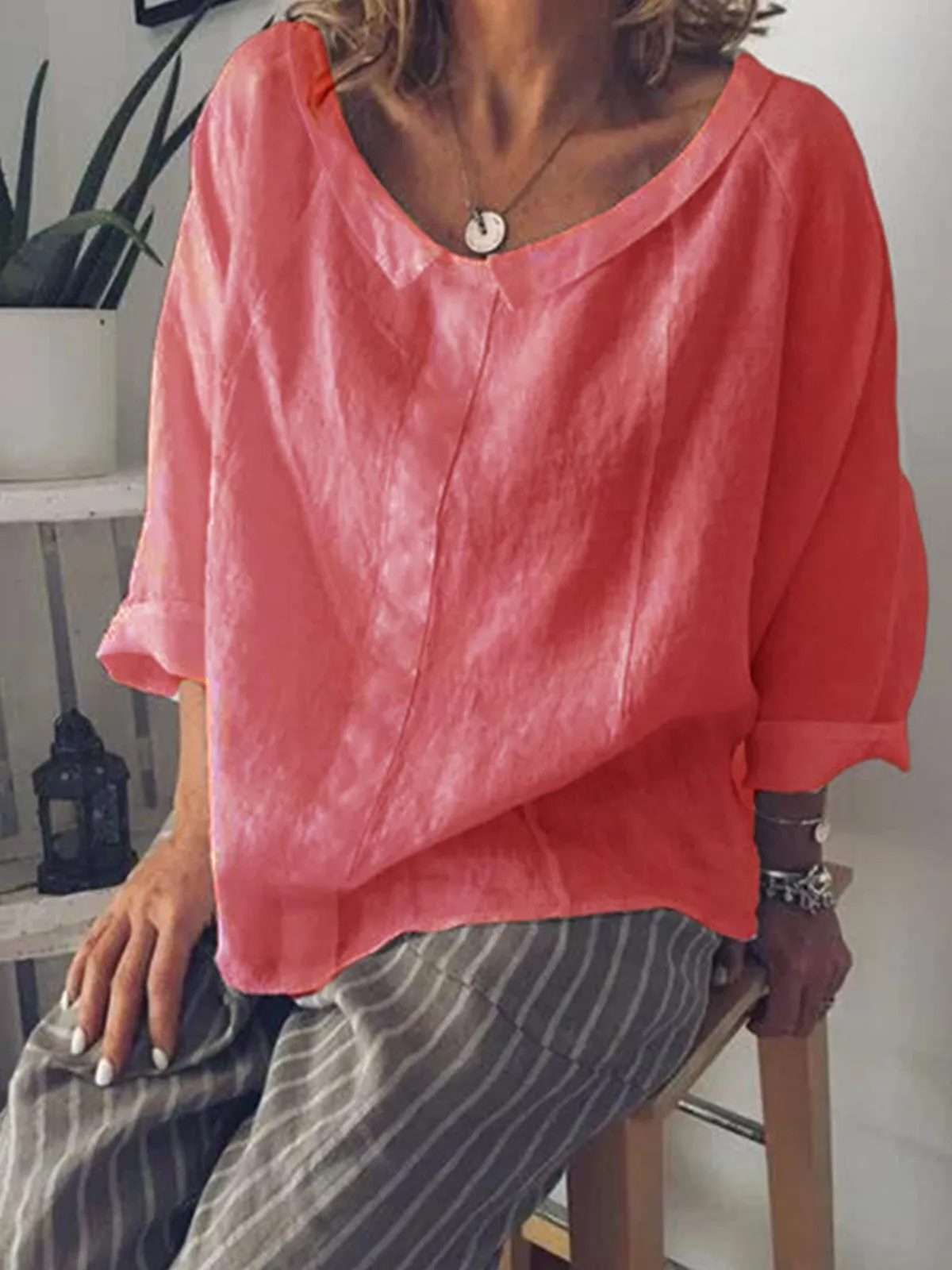Women's Solid Color Small Lapel Pullover Cotton Linen Shirt