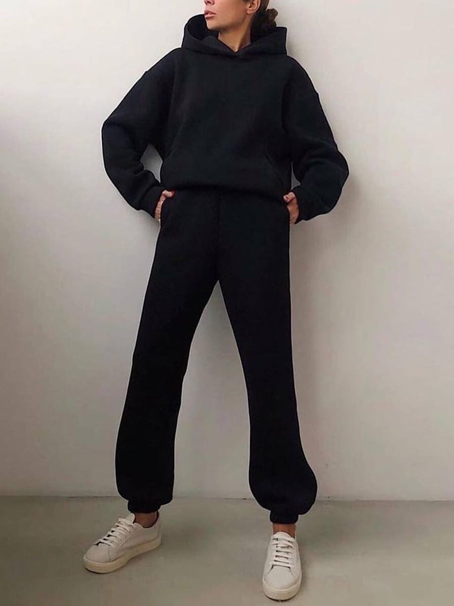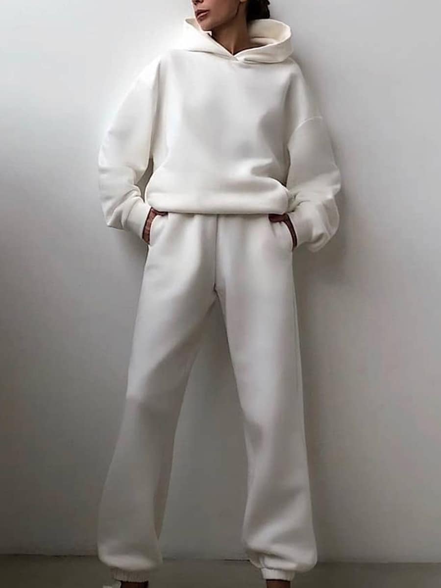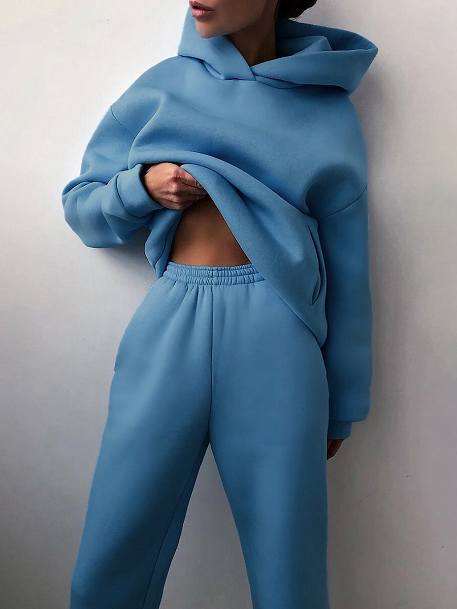 Gender:Women's,Sports Clothing Sub Category:Sweatsuit,Tracksuit,Clothing Type:Clothing Suit,Activity:Exercise,Jogging,Fitness,Running,Occasion:Lounge,Athleisure,Casual,Street,Season:Winter,Fall,Spring,Fit Type:Loose Fit,Function:Thermal Warm,Soft,Breathable,Fabric:Fleece,Sleeve Length:Long Sleeve,Design:2 Piece,Neckline:Hooded,Look After Me:Washable,Wet and Dry,