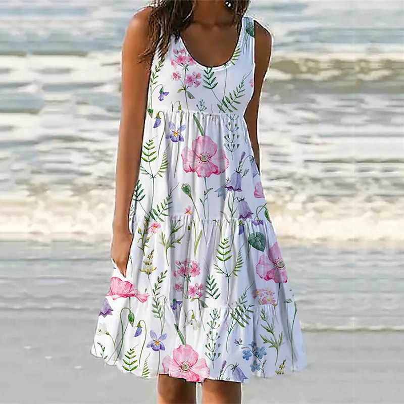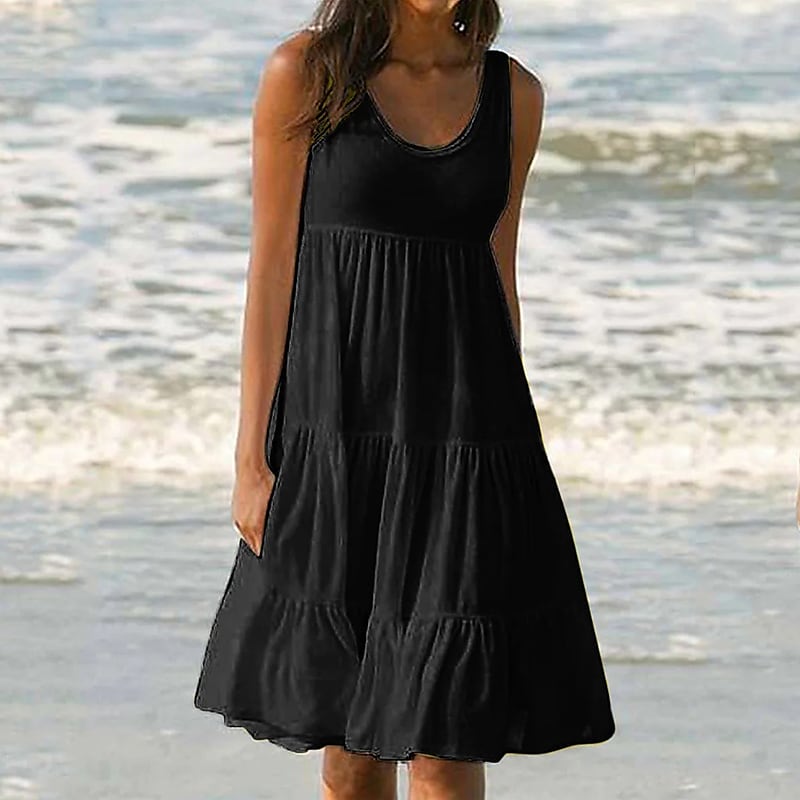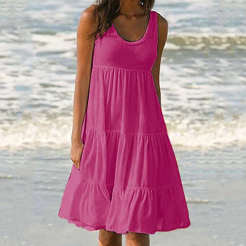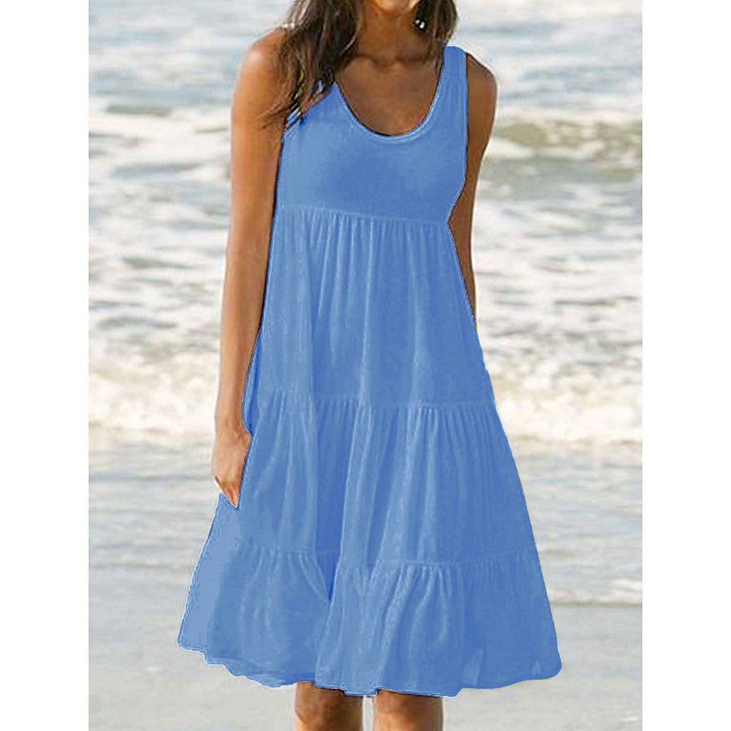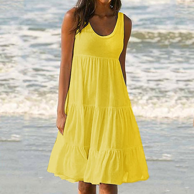 Gender:Women's,Style:Casual,Basic,Occasion:Beach,Daily,Vacation,Dresses Type:White Dress,Sundress,Neckline:Crew Neck,Fabric:Polyester,Design:Pleated,Ruched,Sleeve Length:Sleeveless,Elasticity:Micro-elastic,Look After Me:Hand wash,Machine wash,Pattern:Pure Color,Season:Summer,Spring,Fit Type:Regular Fit,Dress Length Type:Midi Dress,2022 Trends:Boom Sale Dress,