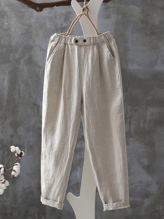 Spring And Summer New Retro Cotton And Linen Fashion Plant Flower Printing Loose Casual Lining Round Neat Short -Sleeved T -Shirt Women