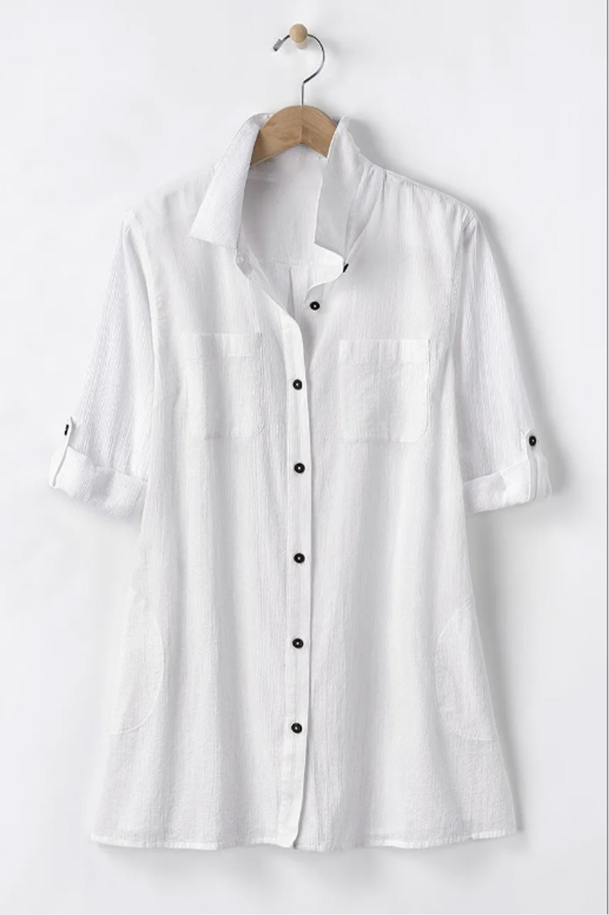 Casual Print Split Joint Turndown Collar Tops(4 colors)