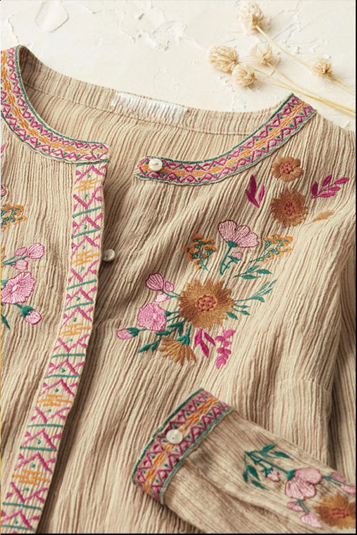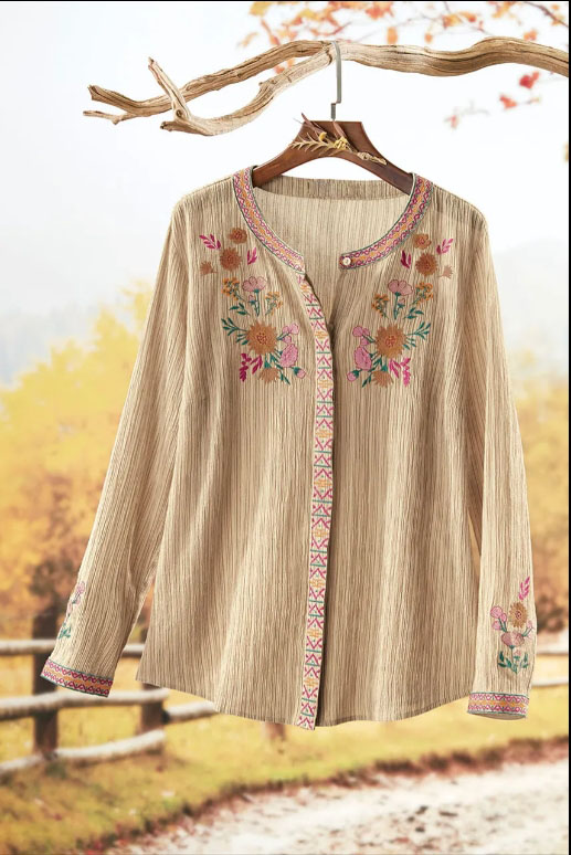 Women's Retro Botanical Floral Design Loose Long Sleeve Crew Neck Top