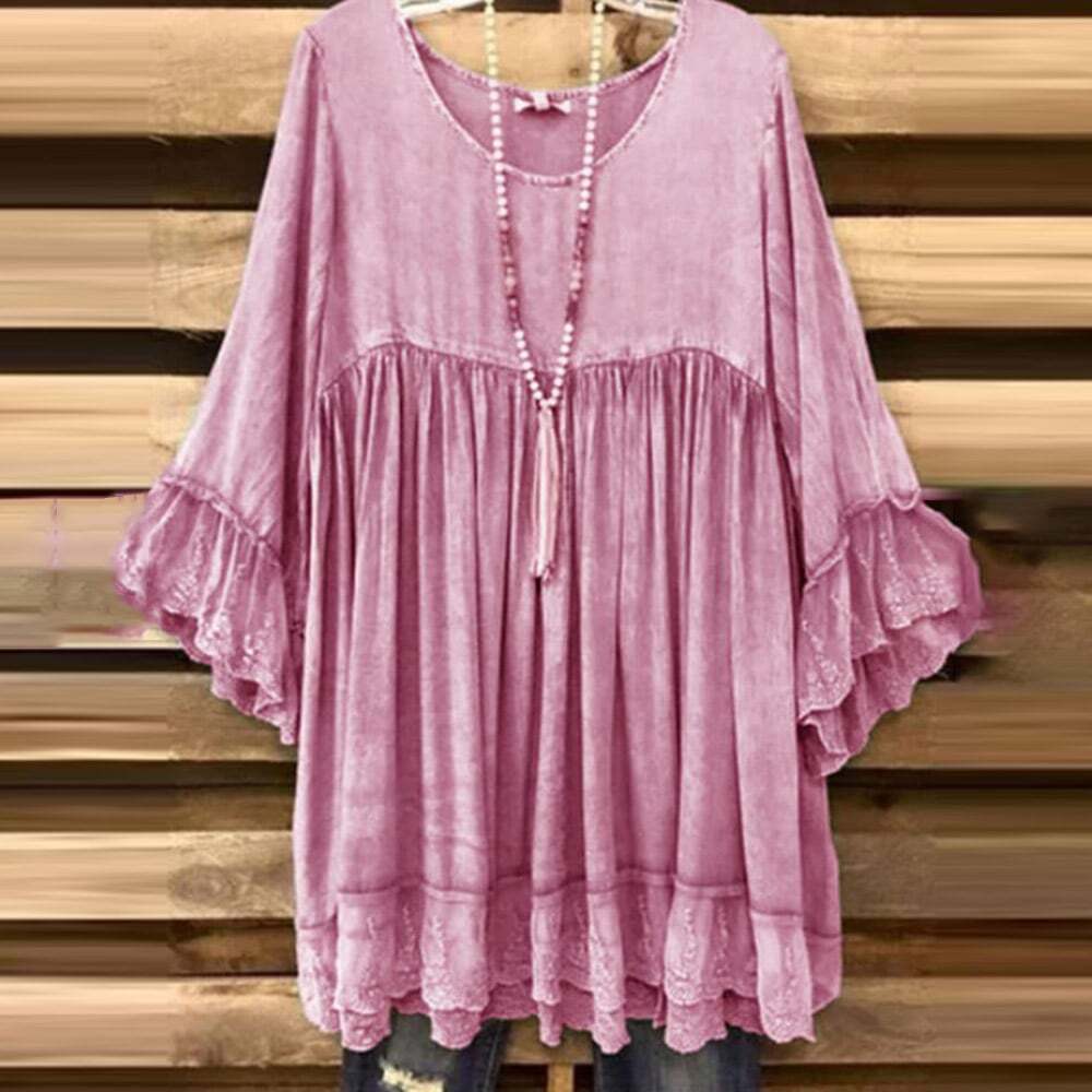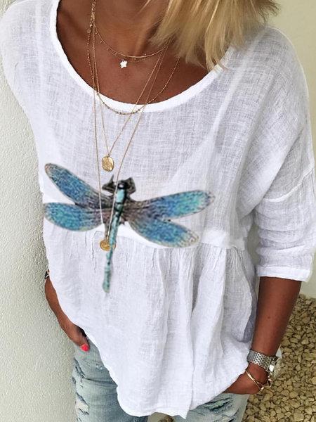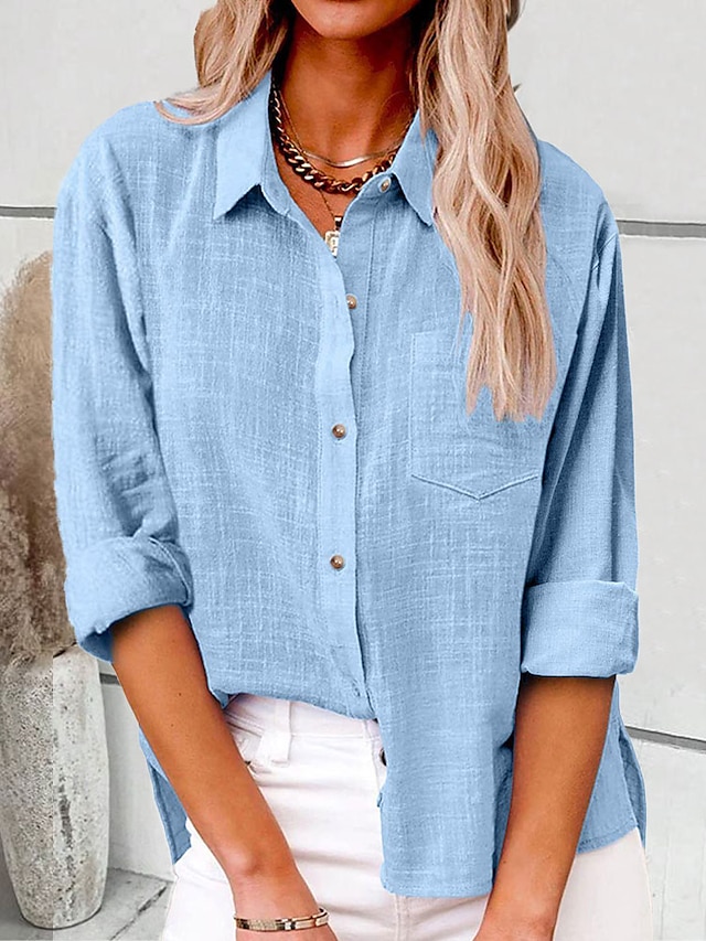 Casual Long Sleeve Round collar Plain Shirts & Tops