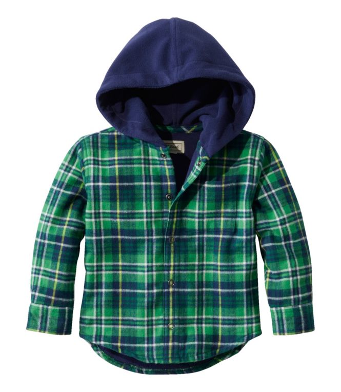Our hooded shirt combines the best of both worlds: warm, breathable fleece and soft yet rugged flannel so little ones stay extra warm and cozy.